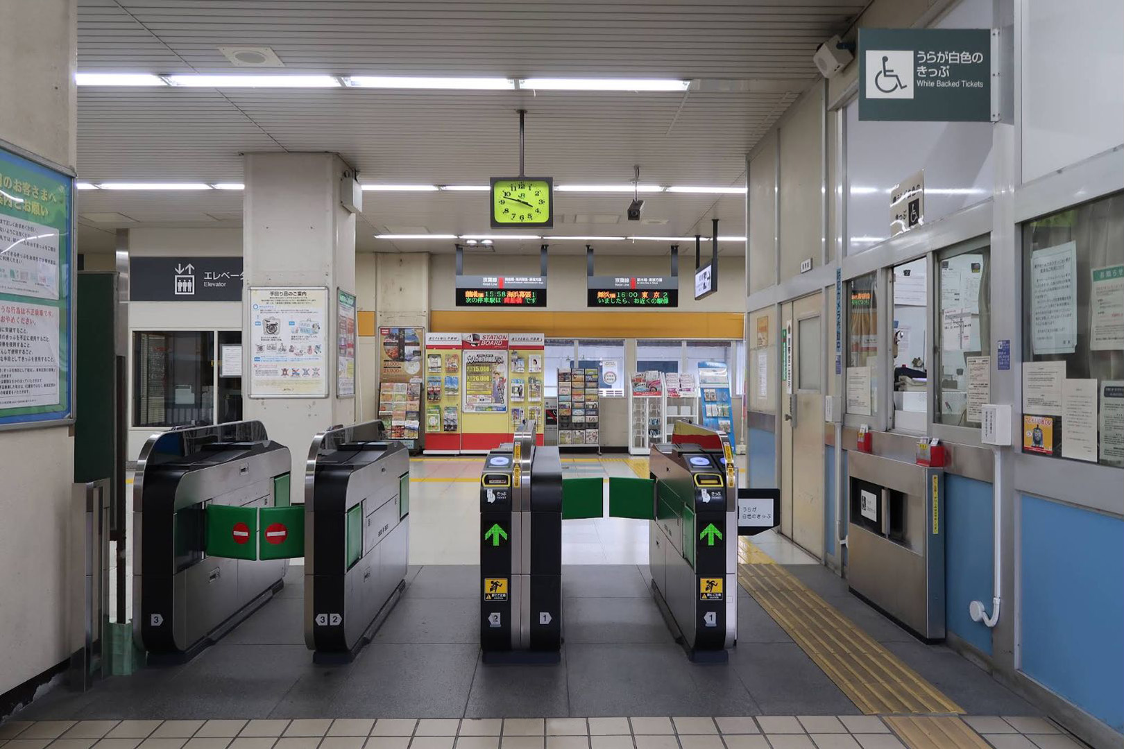 国道357号側に自動券売機・自動改札機・自動精算機が設置されている。