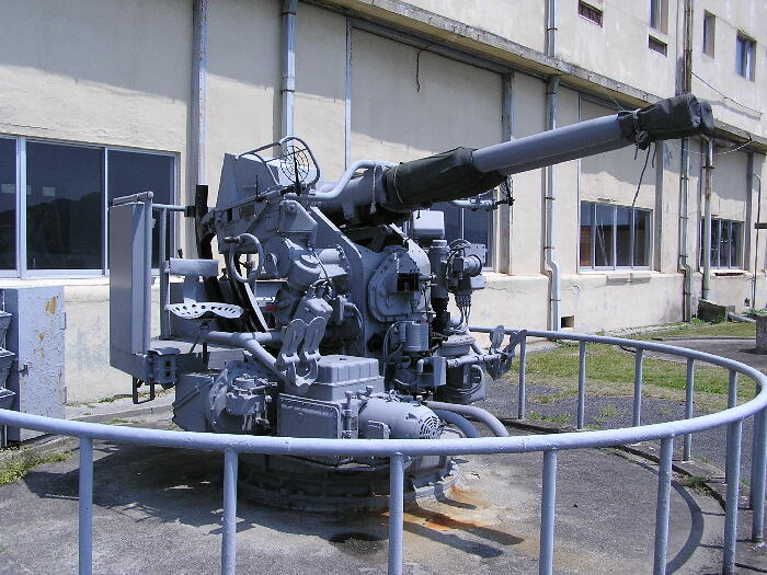 対空、対艦両用であり、76o砲に比べて射程も24,000mと長くなっているが、逆に発射速度は半分程度に落ちています。 |