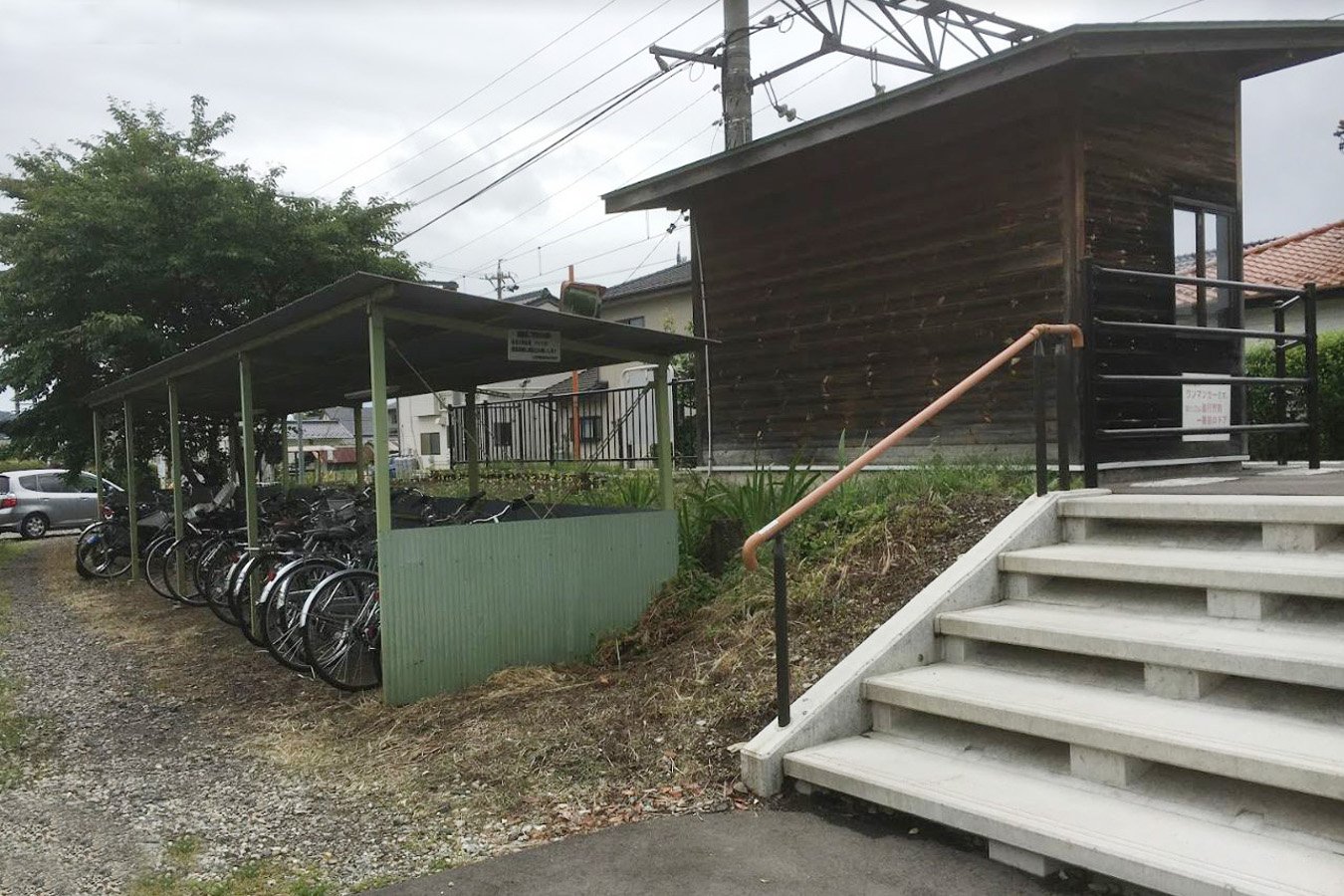 待合室・駐輪場があります。かつては駅員配置駅でした。