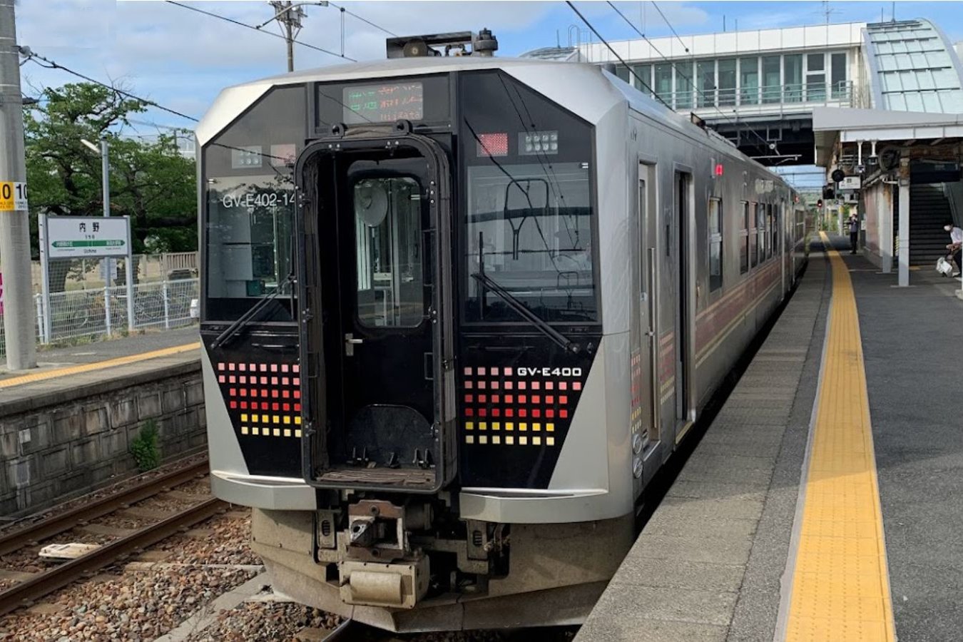 - 東三条駅間)と共に全線電化を果たした。同月のダイヤ改正では内野駅 - 新潟駅間が31往復(従来は20往復)に大増発され、同区間は日中30分間隔での運行となった。同区間はその後も1986年の8往復増など増発が続き、2001年には新潟駅毎時0・20・40分発のパターンダイヤが導入された。