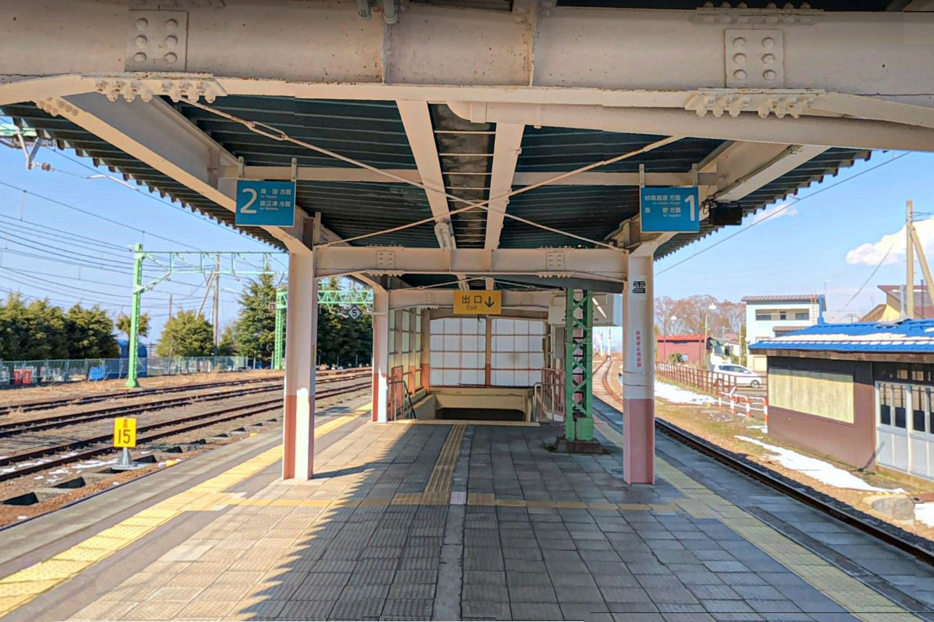 駅舎とホームを繋ぐコンクリート造りの地下通路は、1941年(昭和16年)から1942(昭和17年)かけて造られたものであり、戦前で地方で造られたものとしては珍しい。また、長野寄りの引込線を覆う木造の「雪囲い」は1911年(大正11年)に建築されたもので、明治時代のレールを柱として再利用し、壁や屋根を木の板で構築しています。