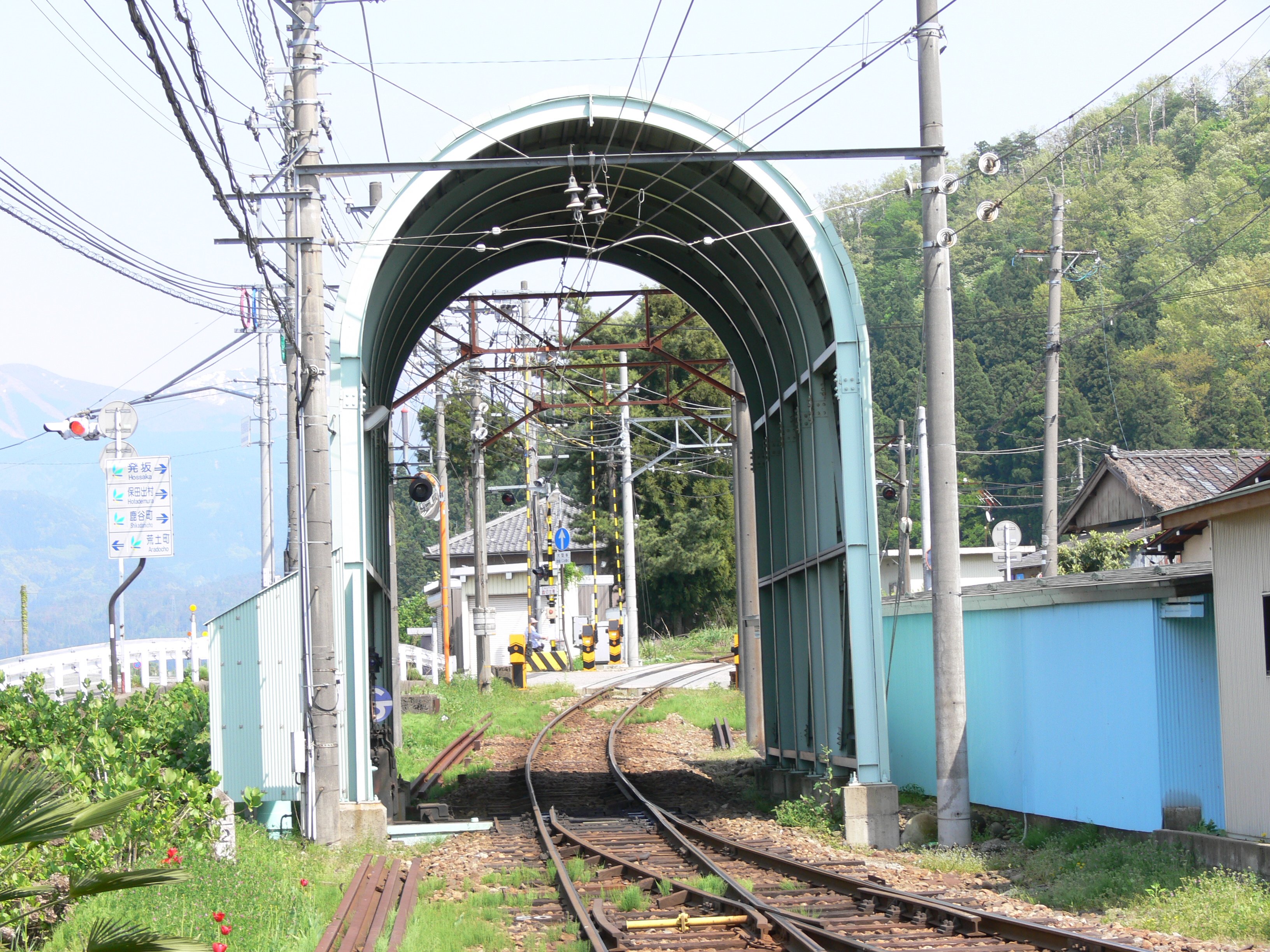 | 相対式ホームをつなぐ踏切には遮断機がない |