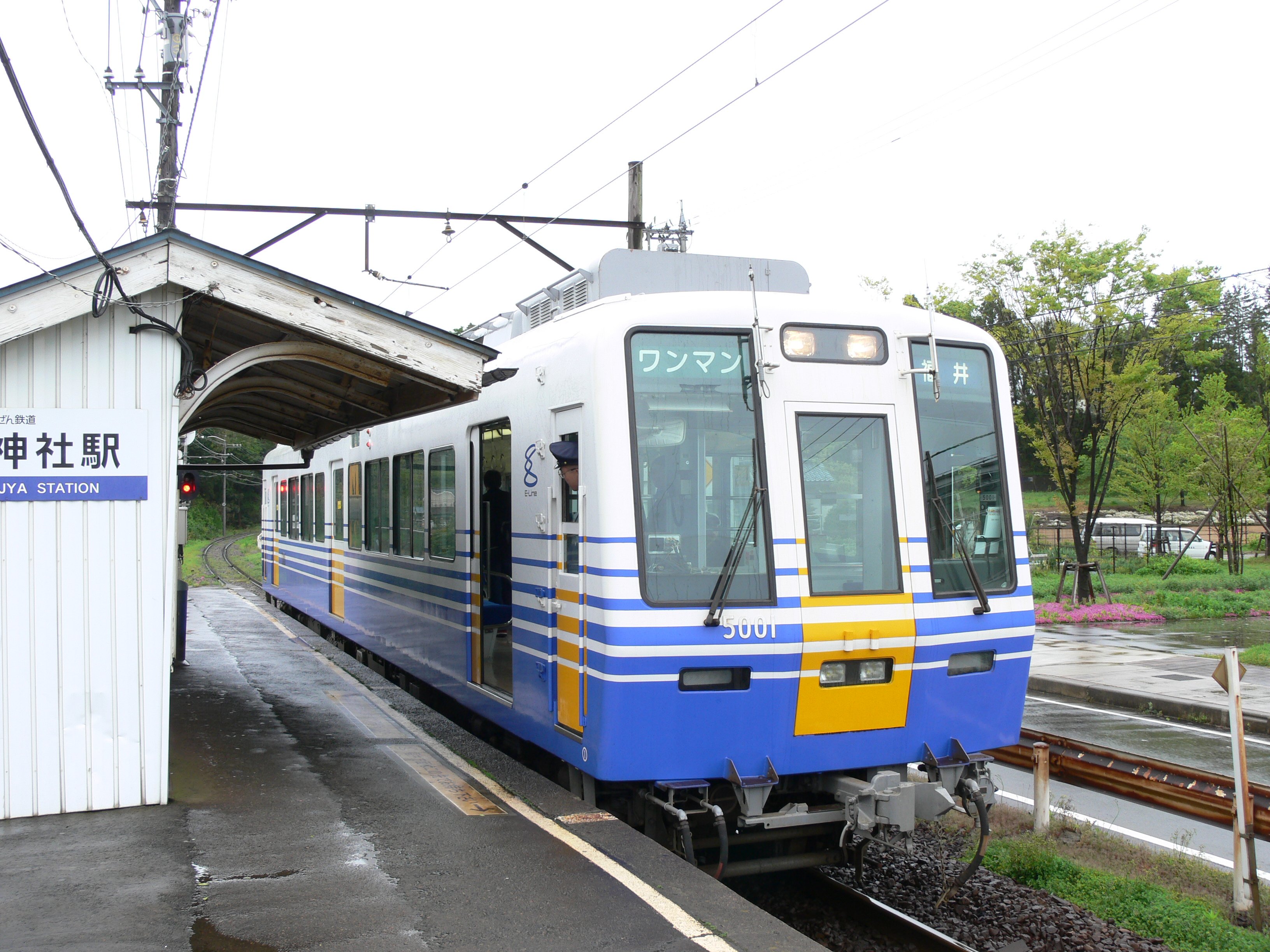 三国神社駅に停車する5001形電車 |