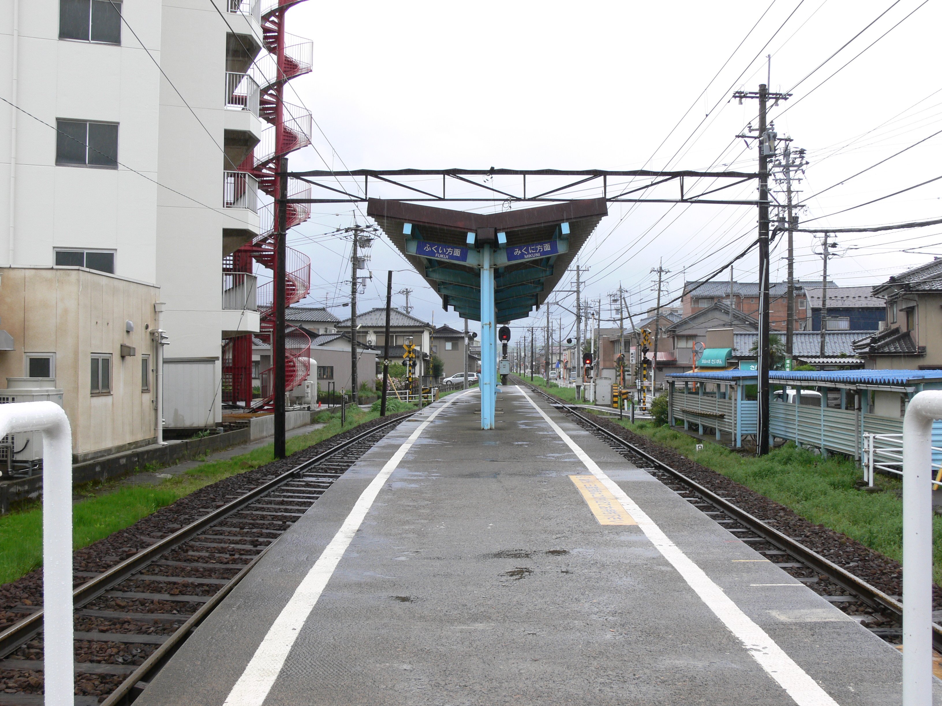 前述の福井鉄道との直通運転開始までは島式ホーム1面2線を有する地上駅であったが、低床車両専用の単式ホームが挟み込む形の3面2線の構造に変更した。出札窓口・改札口からホームへは構内踏切を渡る。