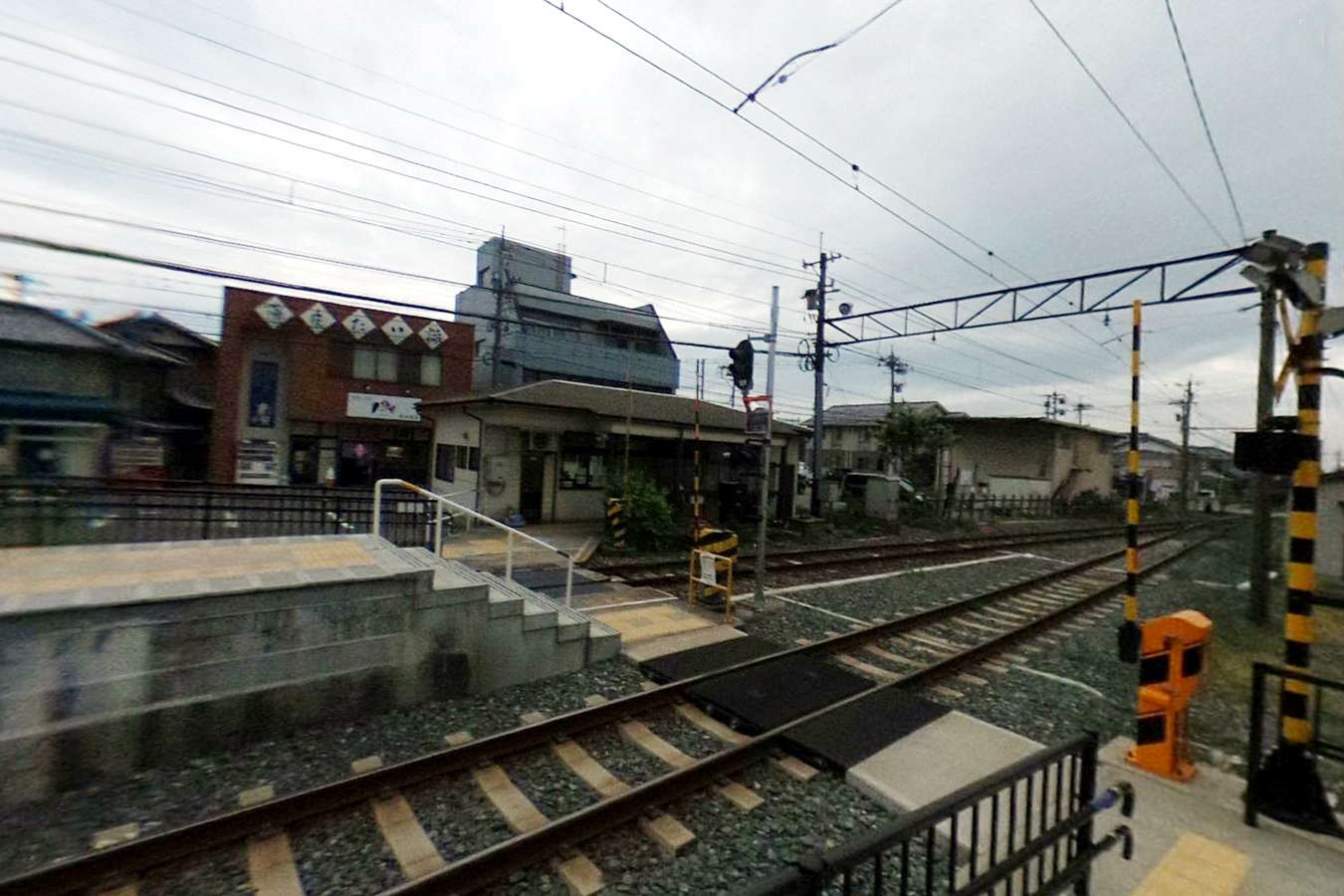 島式ホームへは構内踏切で渡る |
