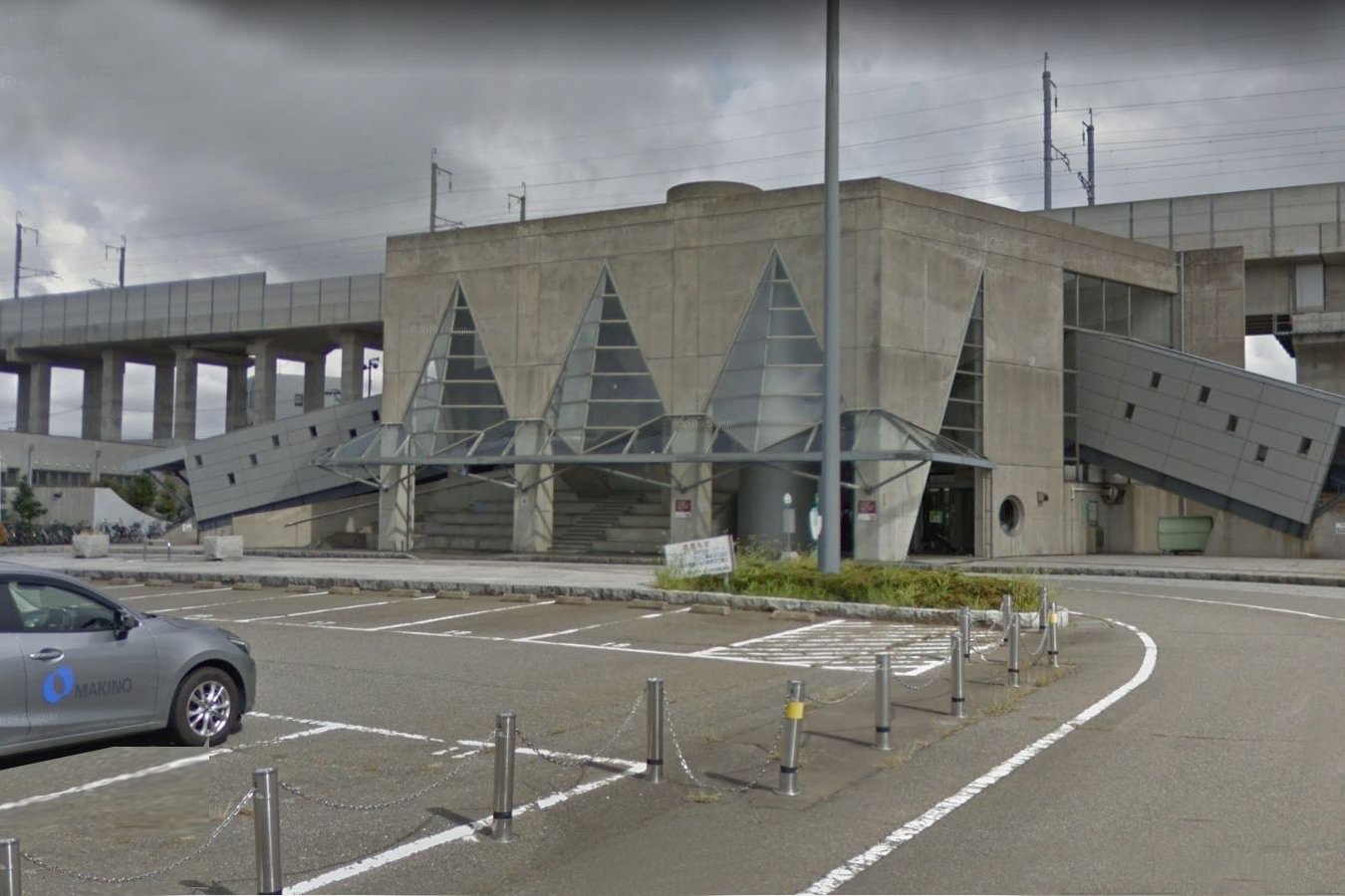 北陸新幹線(金沢駅以西の開業までは金沢駅 - 白山総合車両所の回送線となる)が南口駅舎の上を通過するため、南口周辺の再整備が行われたが、隣接する西金沢駅や松任駅のように橋上化は行わず新たな地上駅舎が建設され、2012年4月21日の始発より使用を開始しました。2010年9月4日の始発より2012年4月20日の終電までは仮駅舎が使用されていました。