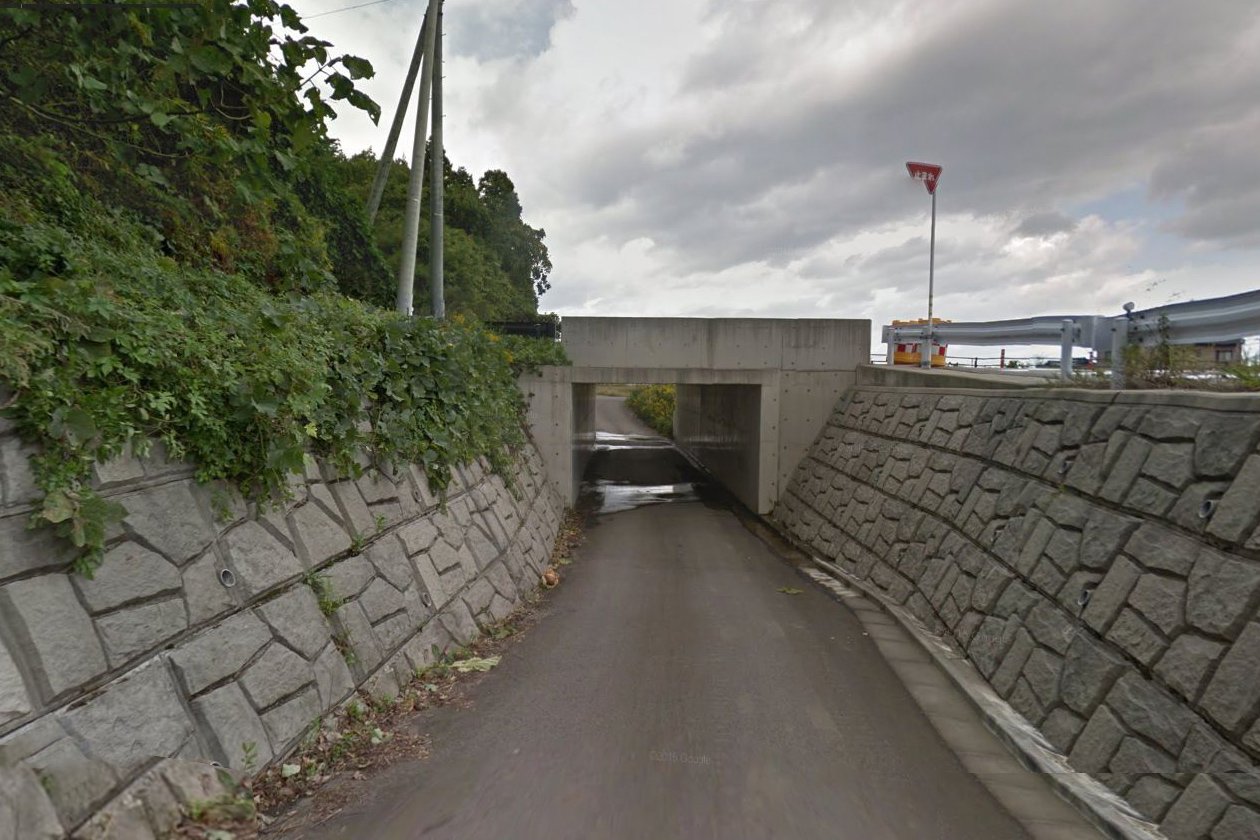 | 山中線跡が県道142号線と立体交差しています |