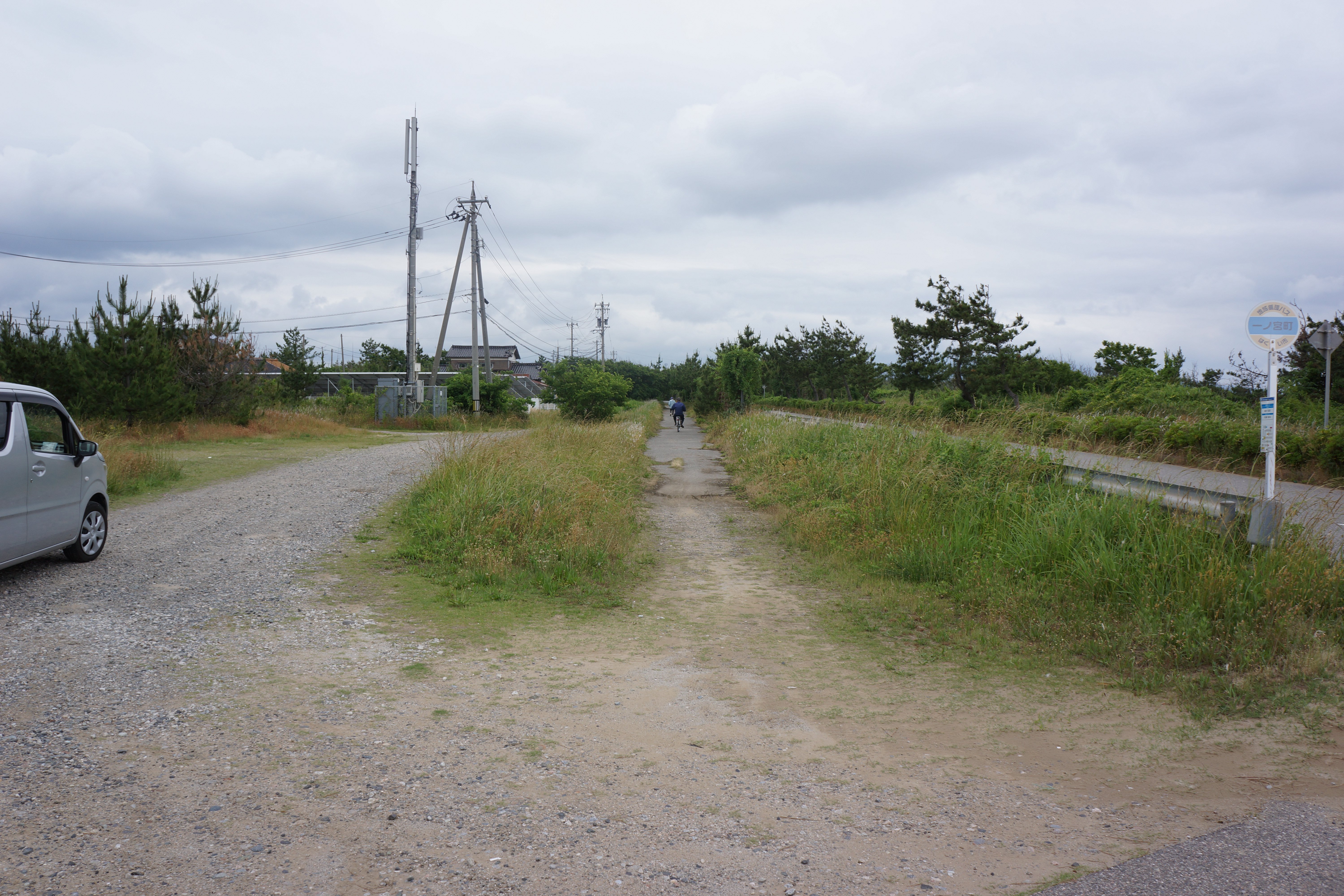 | 線路跡とバス停 |