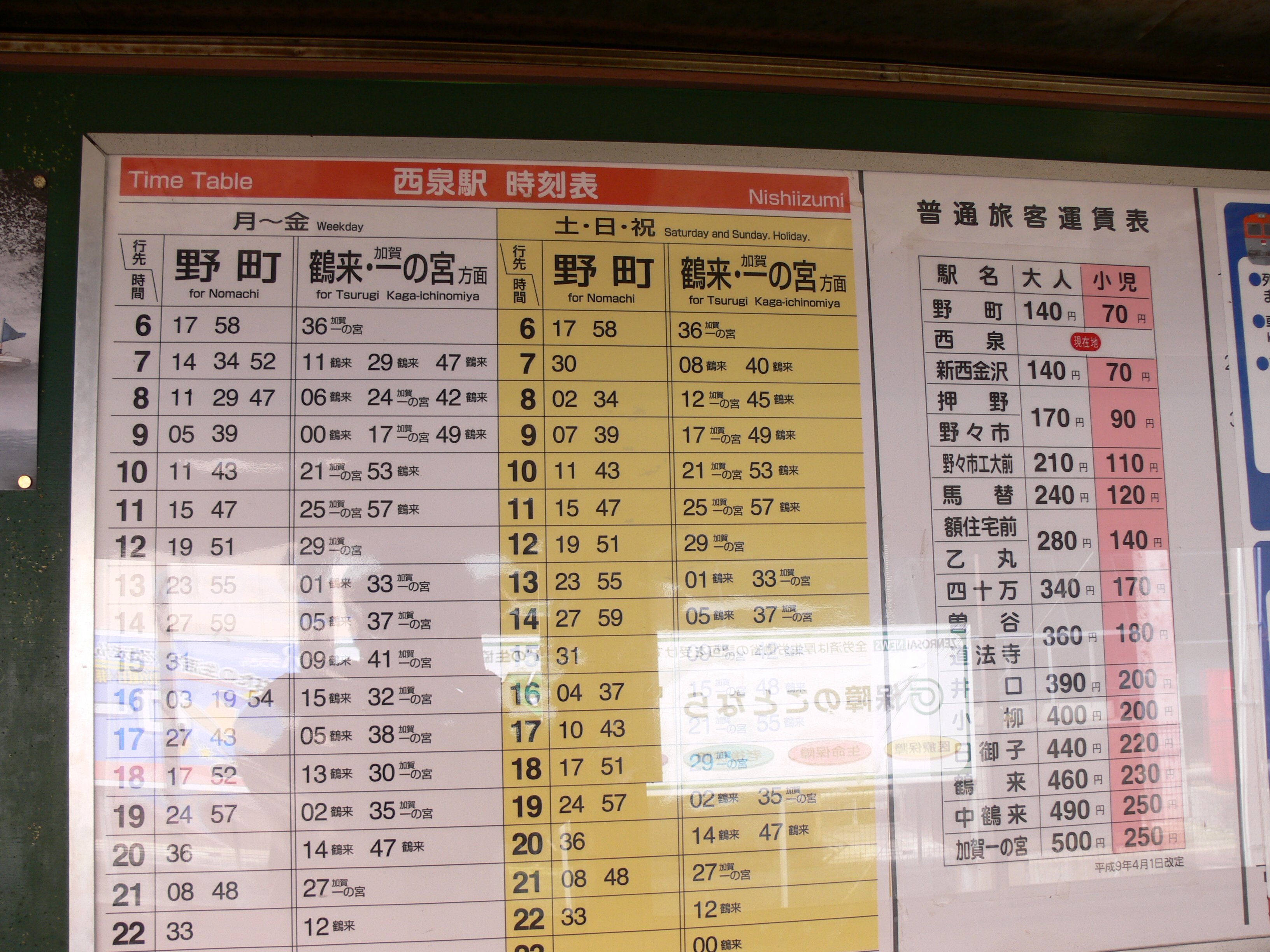 時刻表と運賃表 |
