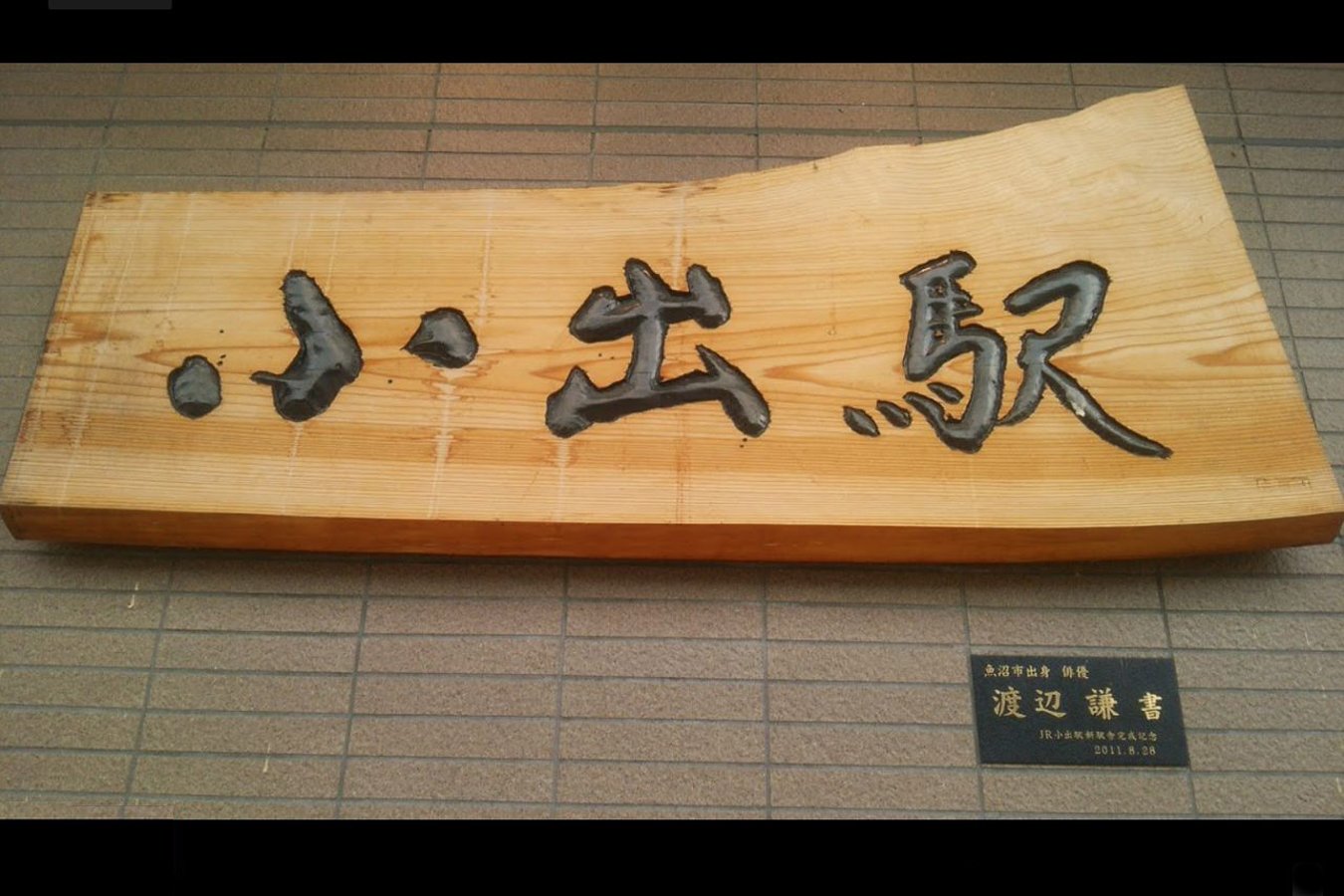 また、駅舎には当地出身の俳優、渡辺謙が書いた駅名表示が設置されています。