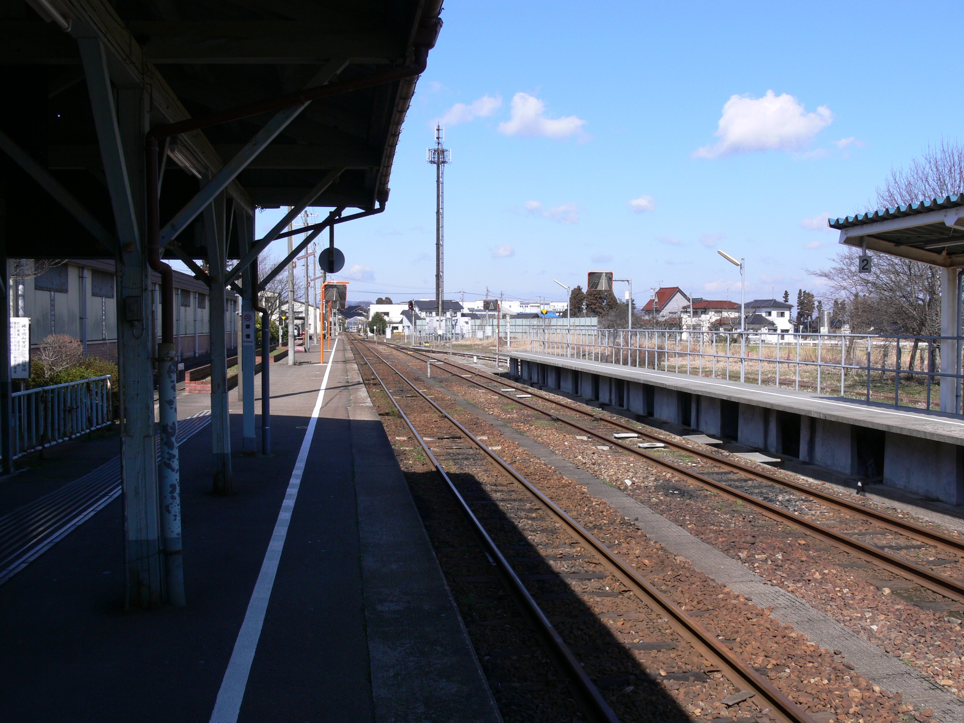 相対式ホーム2面2線を持つ地上駅であり、終端部において機回しができる配線となっている。