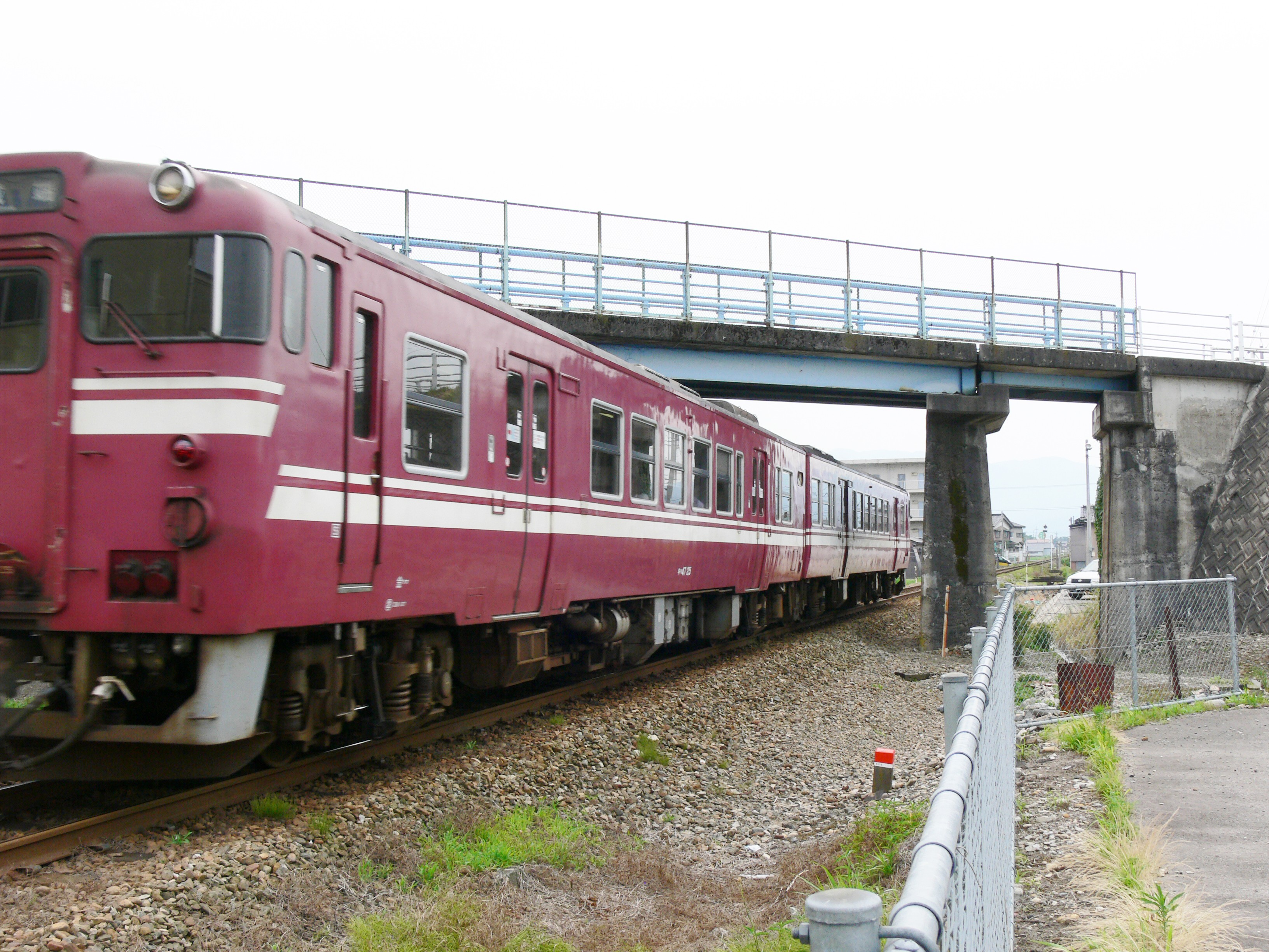 城端線列車が跨線橋の下を通過しました |