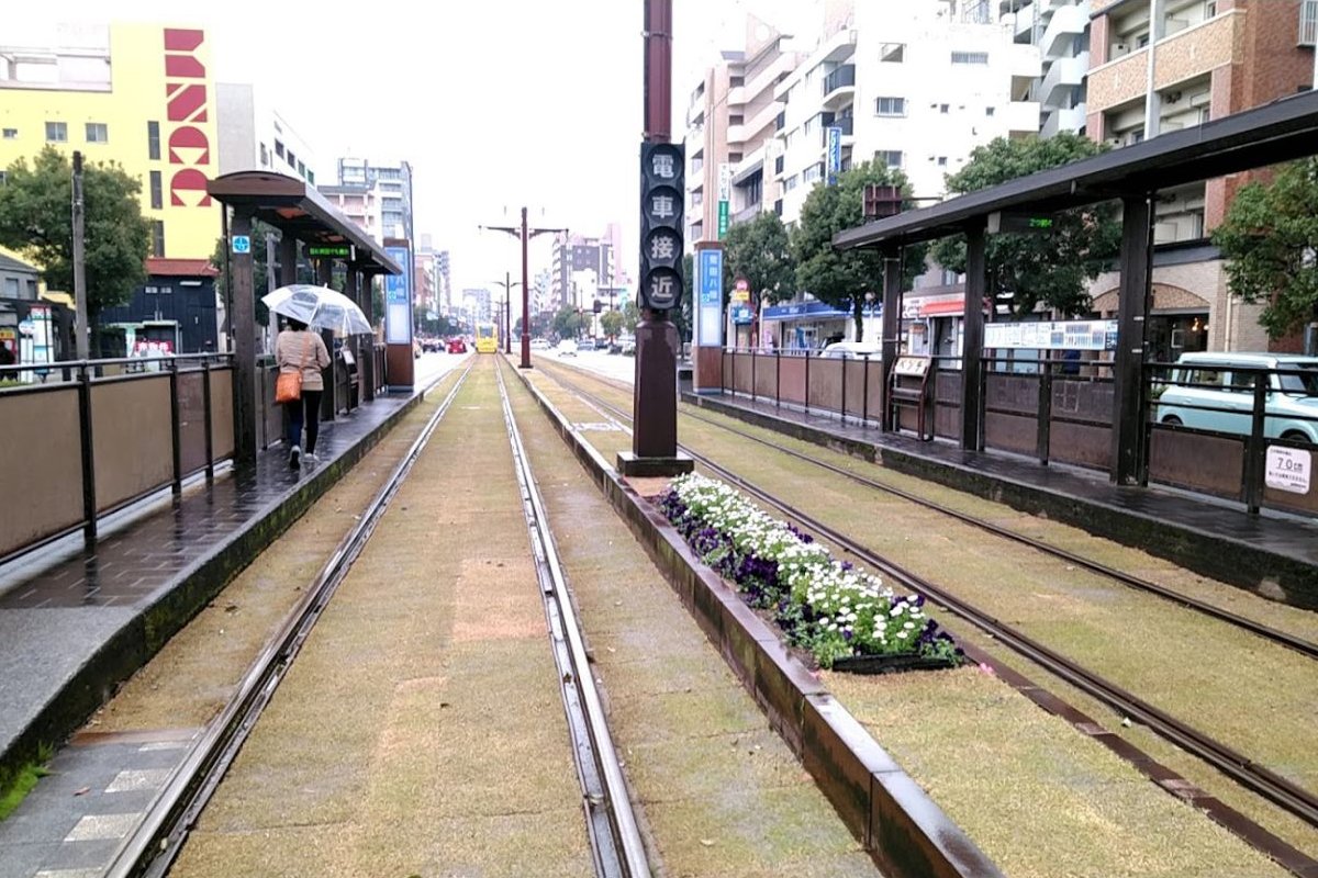 鹿児島市電1系統の停車する停留場である。