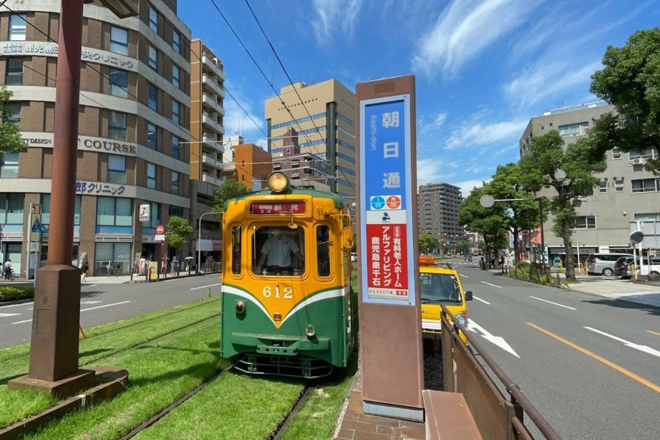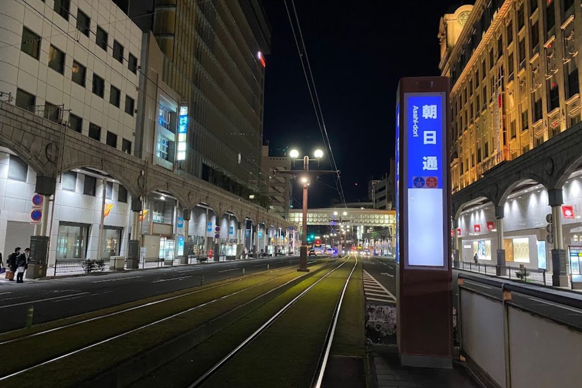 駅の概要 朝日通停留場(あさひどおりていりゅうじょう)は、鹿児島県鹿児島市名山町および金生町にある鹿児島市電の停留場。鹿児島市電1系統と2系統が使用する。