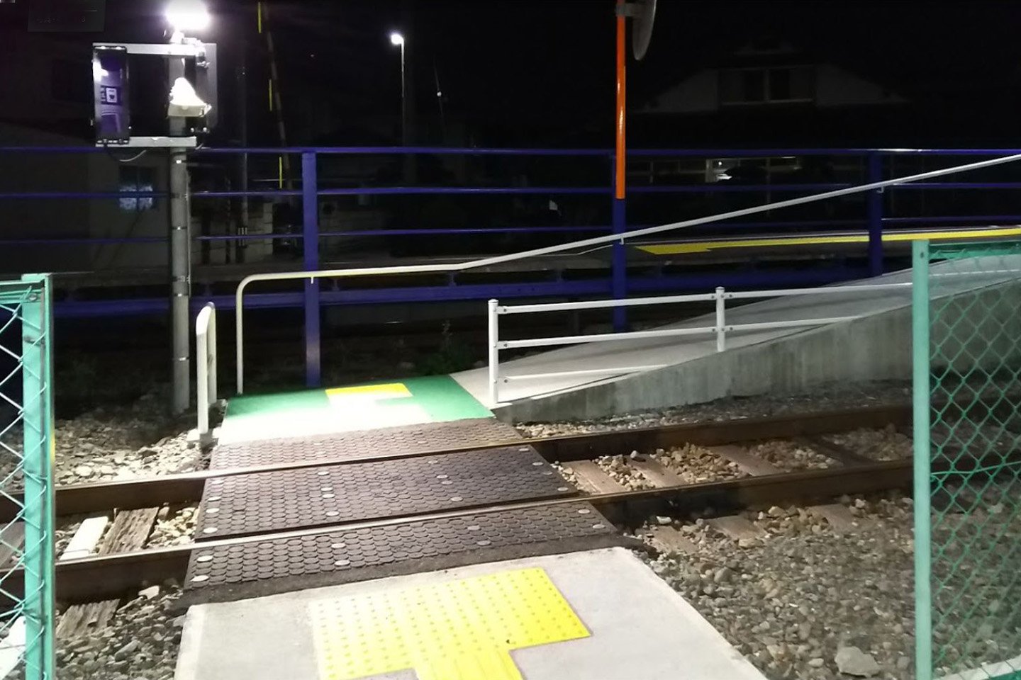 | 遮断機なしの構内踏切 |