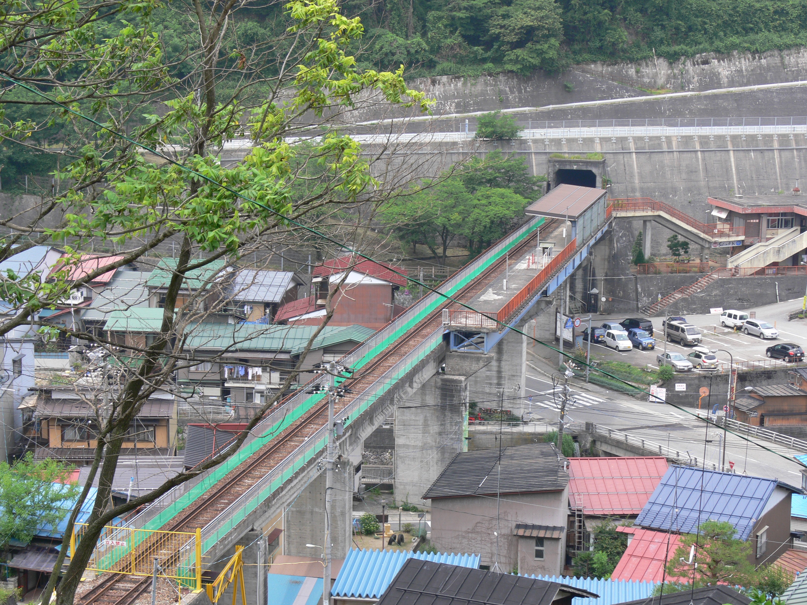 | 国道41号線から見た神岡鉱山前駅遠景 |