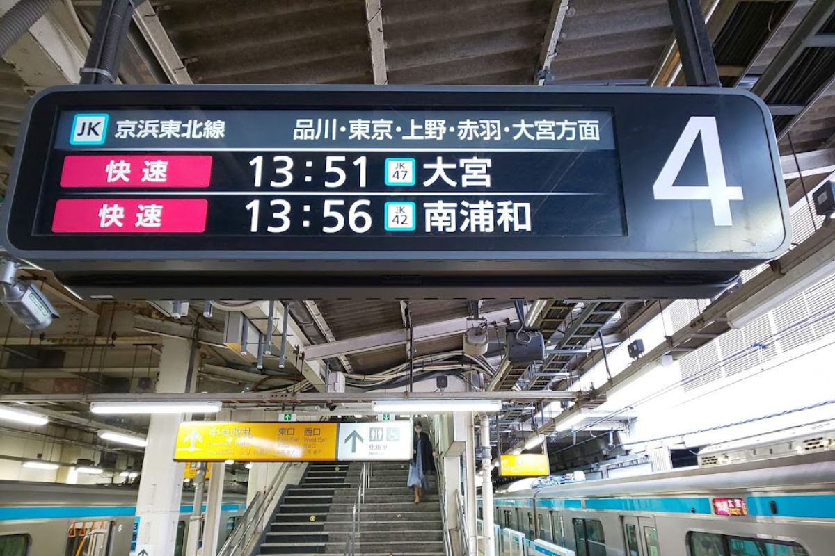 - 4番線ホームからは午前4時22分発の当駅始発大宮行が設定されており、これは現時点で国内の頻回運行路線としては、桜木町発4時18分の大宮行、磯子発4時20分の大宮行に次いで3番目に営業開始時刻の早い定期列車となっている(2024年5月現在)。
