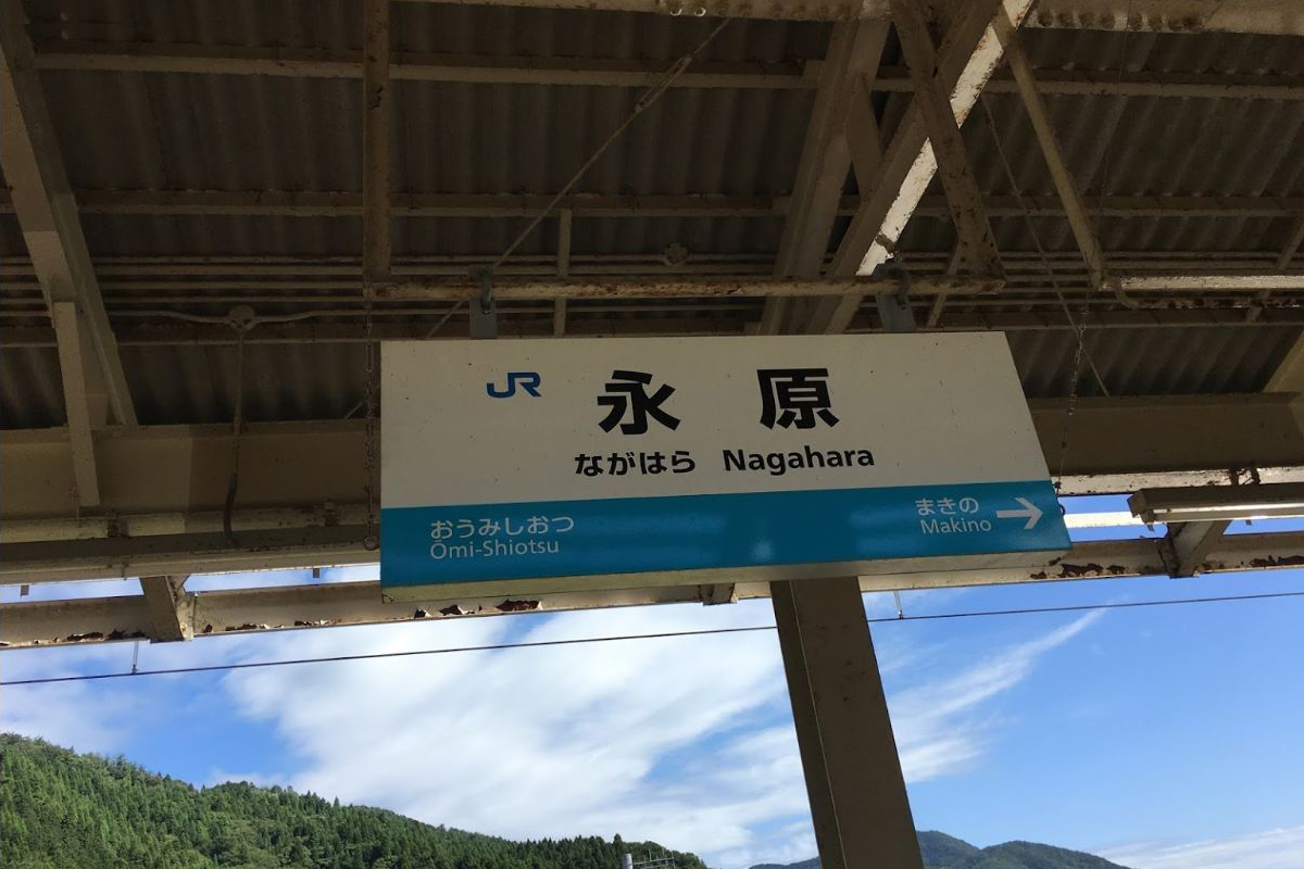 駅名は建設当時の仮称であった「永原」がそのまま採用されたが、地元の要望は「奥琵琶湖」であった。