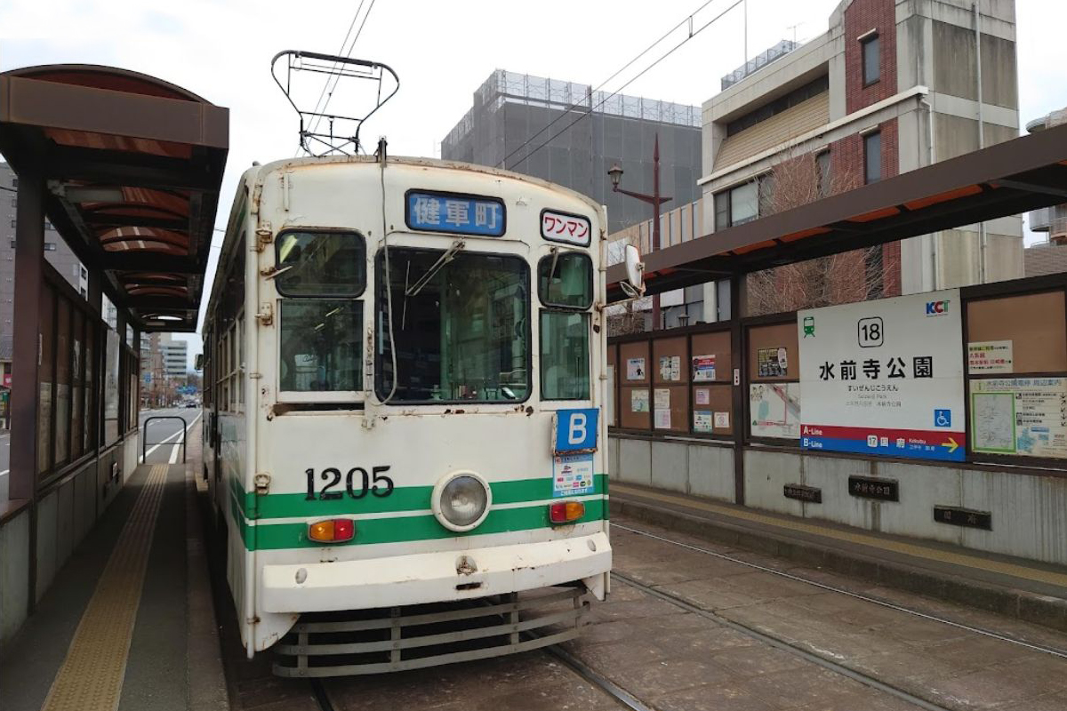 水前寺公園は当電停より200mの距離にある。