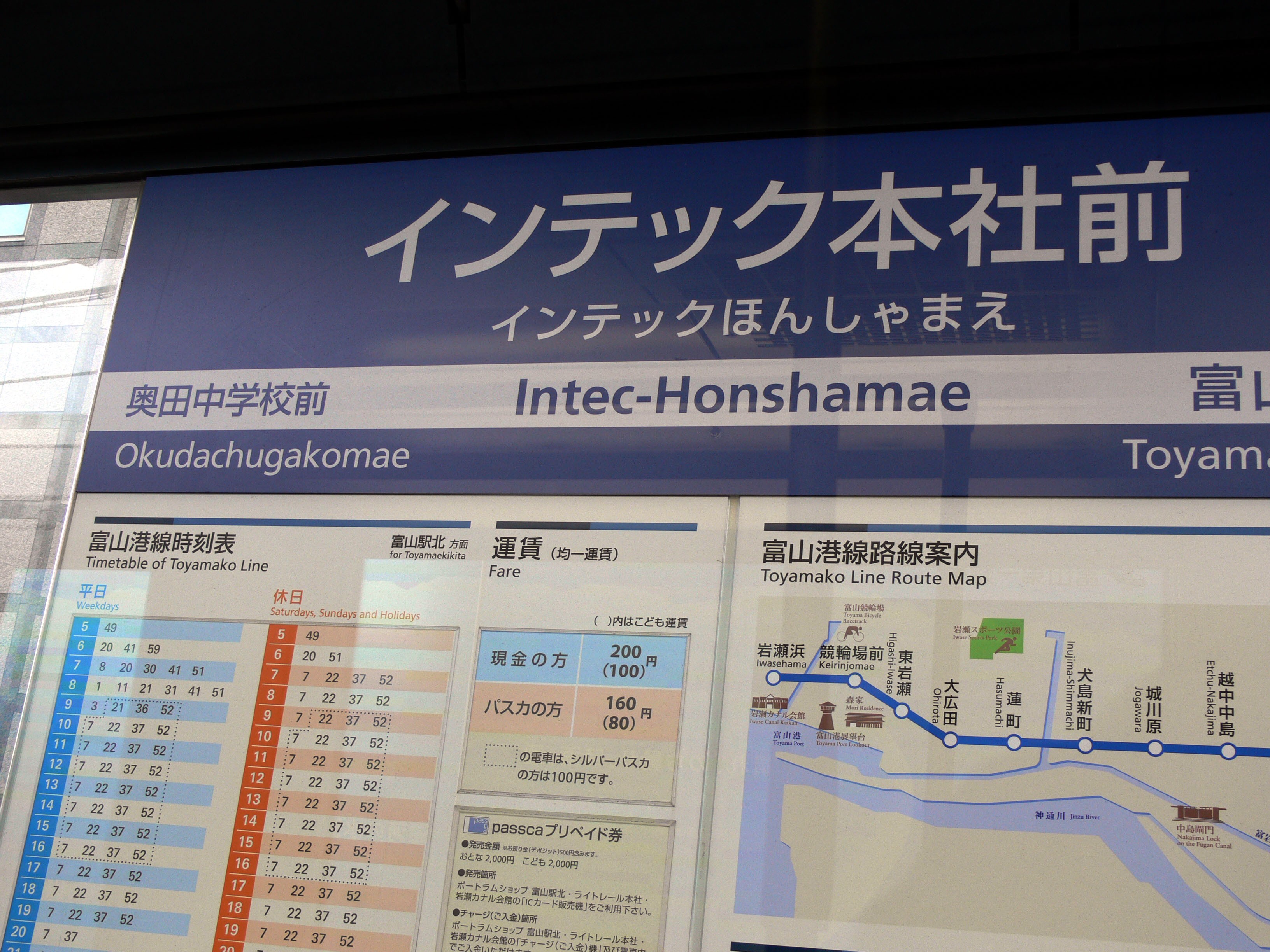 インテック本社前停留場(インテックほんしゃまえていりゅうじょう)は、富山県富山市牛島新町にある、富山地方鉄道富山港線の停留場です。駅番号はC27。