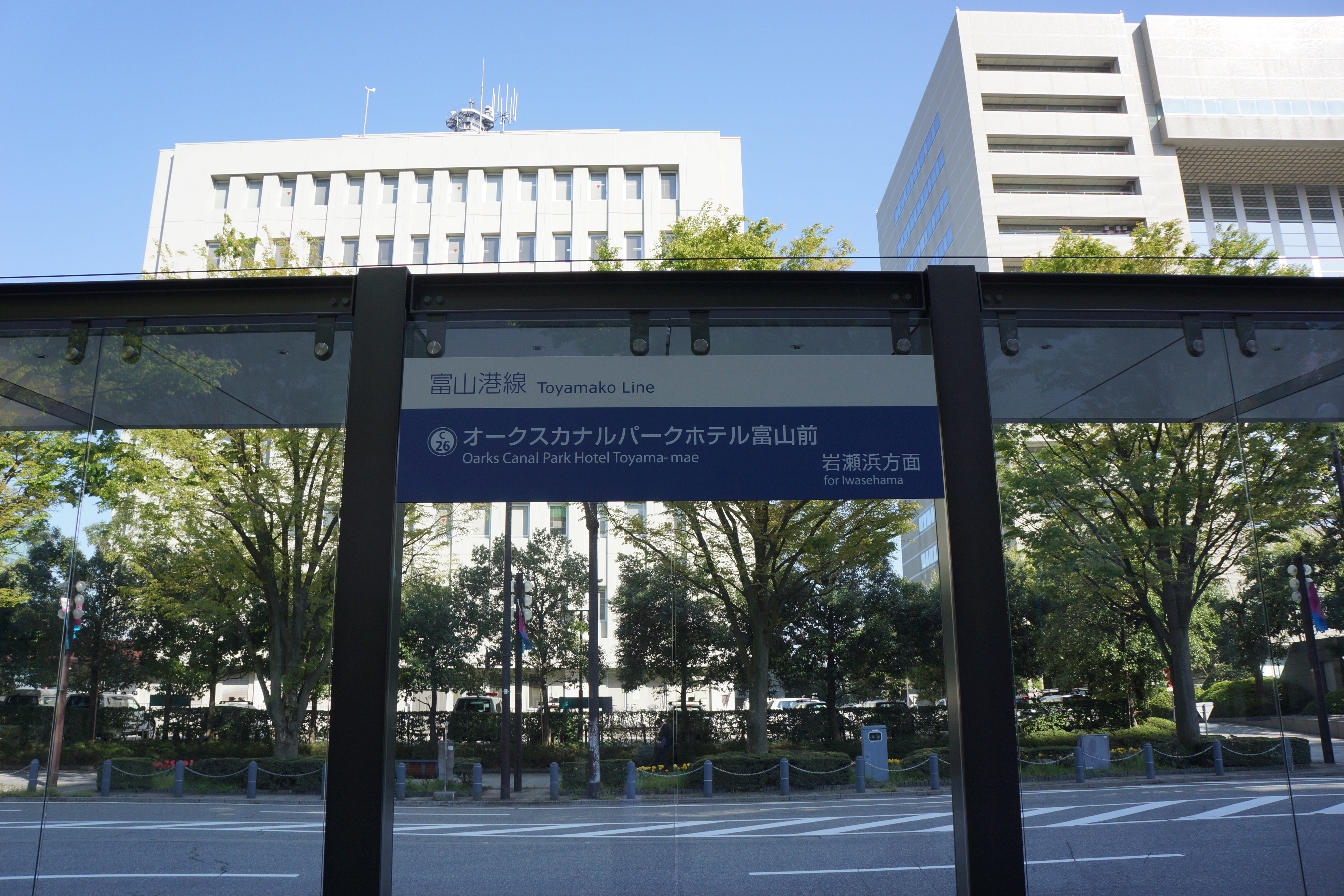 オークスカナルパークホテル富山前停留場(オークスカナルパークホテルとやままえていりゅうじょう)は、富山県富山市牛島町にある、富山地方鉄道富山港線の停留場です。駅番号はC26。