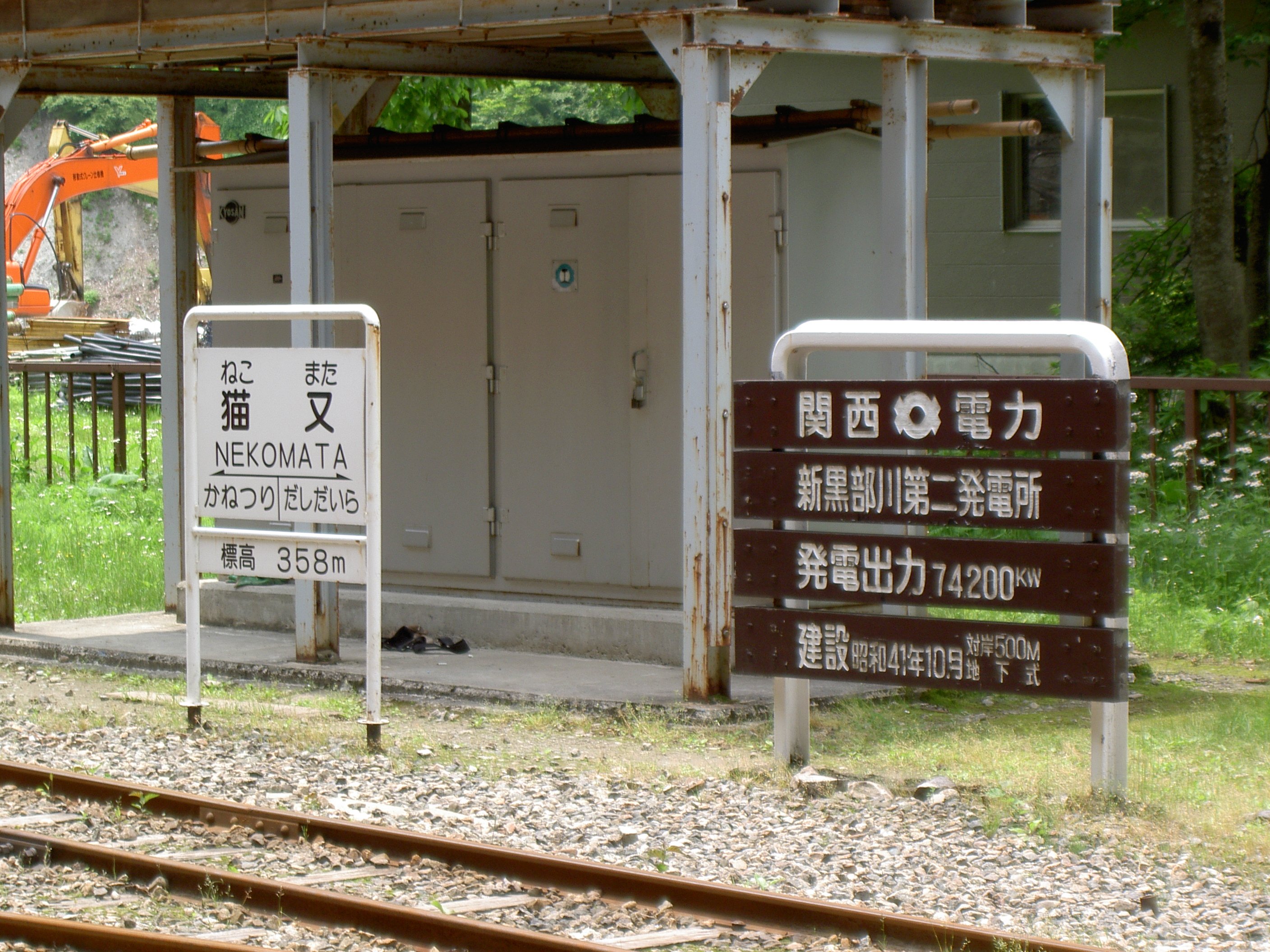 関西電力黒部川第二発電所(通称:猫又発電所)の業務目的で造られた駅で、工事関係者や発電所所員達の宿舎があります。