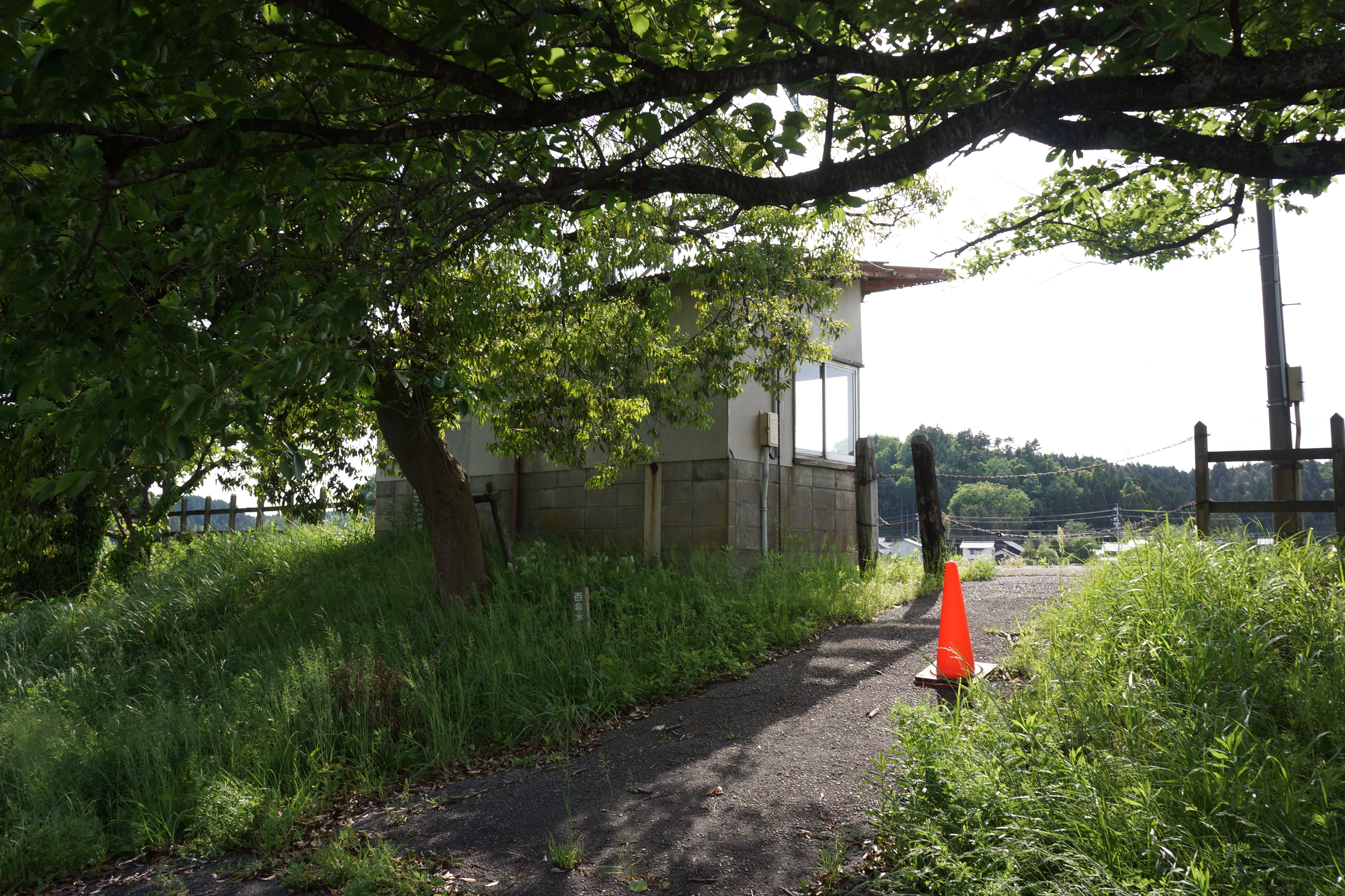 次の前波駅は待合所もトイレもあり、物置もあって地元の営農組合が使用しているようです。まあ、こういう使い方もあるのですね。もちろん草は刈られています。