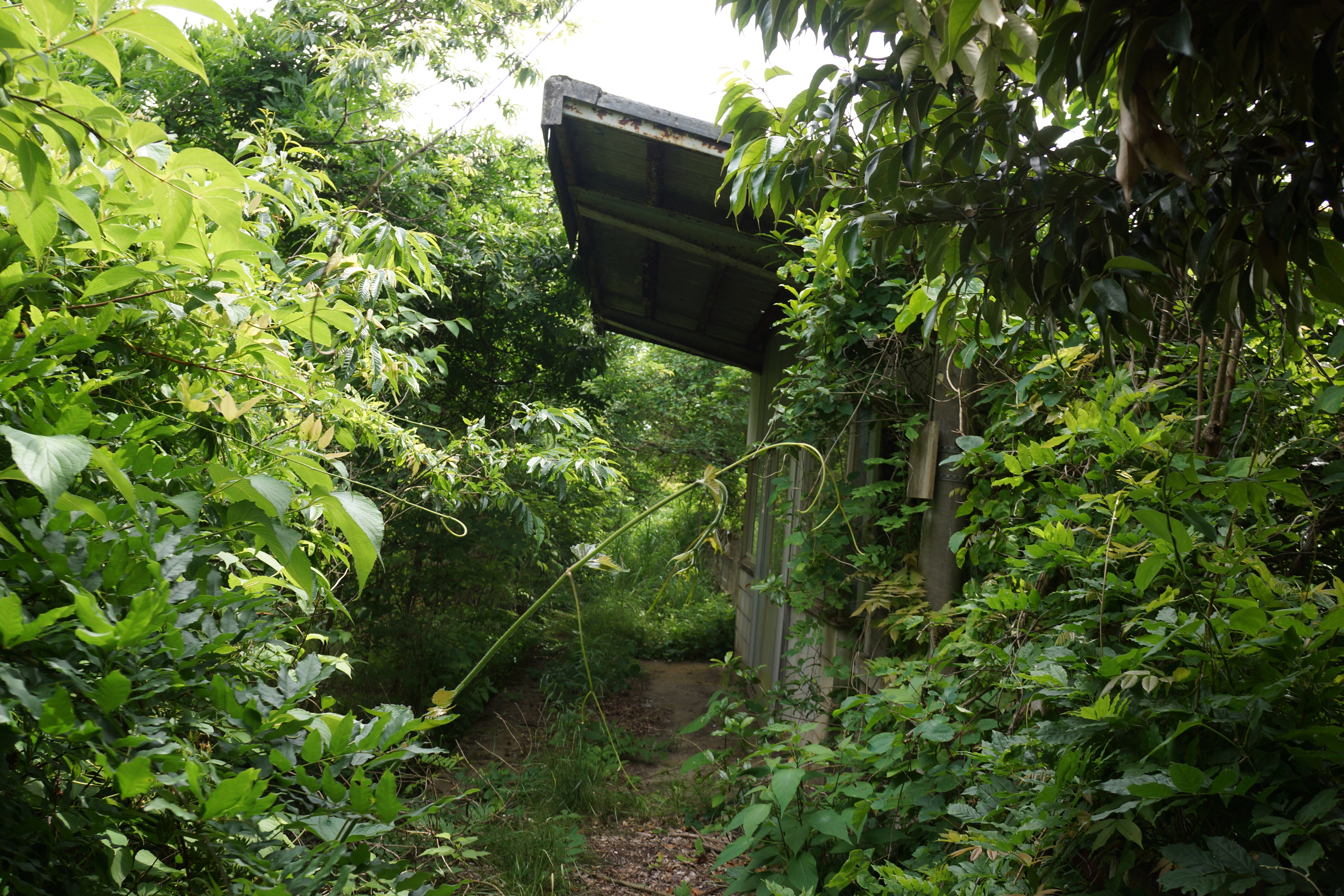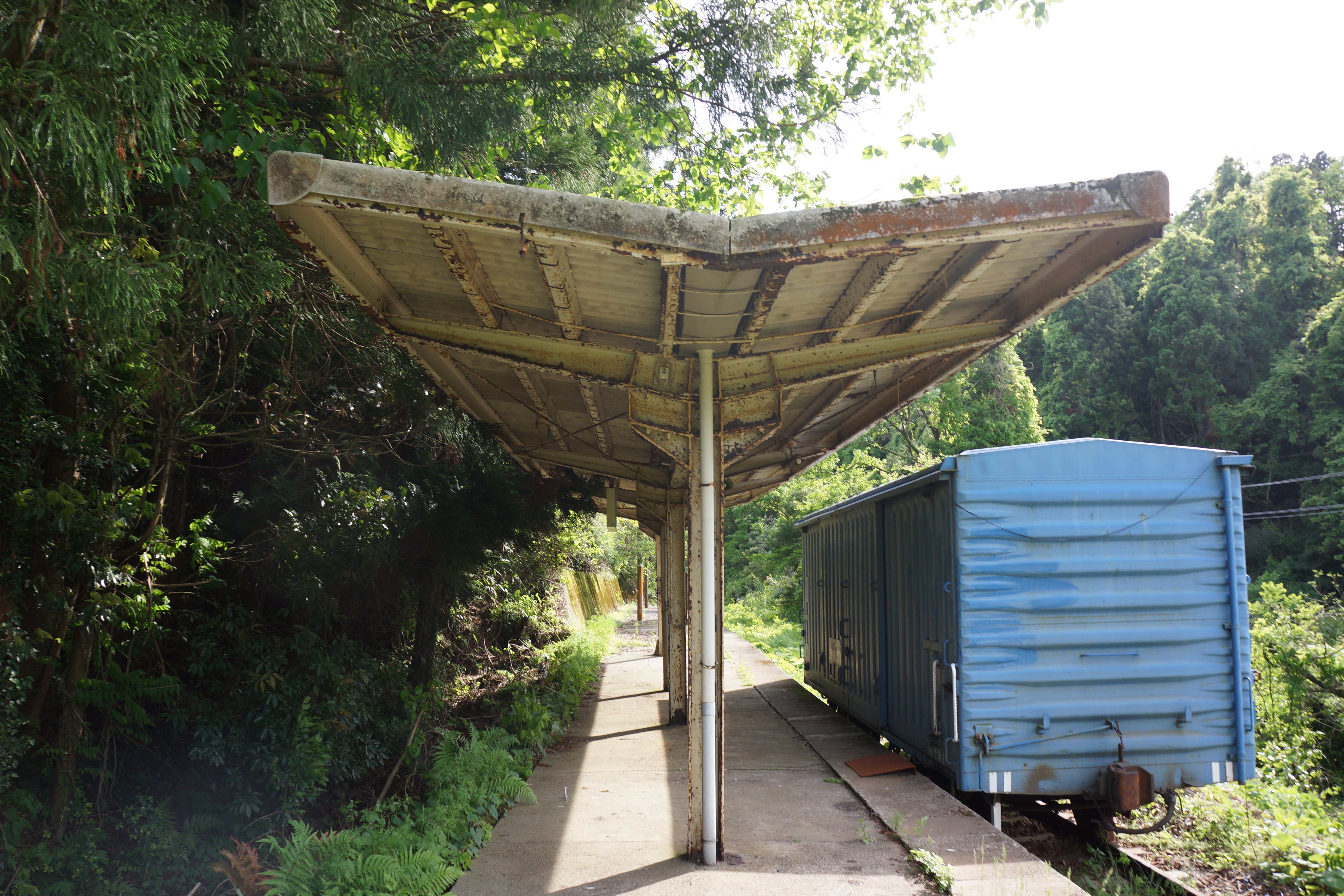 次の古君駅ですが、駅舎もホームも残ってはいるのですが、ここもジャングルと化していて、立ち入るのは危険です。そもそもこの駅の周囲には人家が少なく、古君集落の中心からはかなり遠くて、なぜこんなところに駅を設置したのかと首を傾げてしまうようなシチュエーションです。