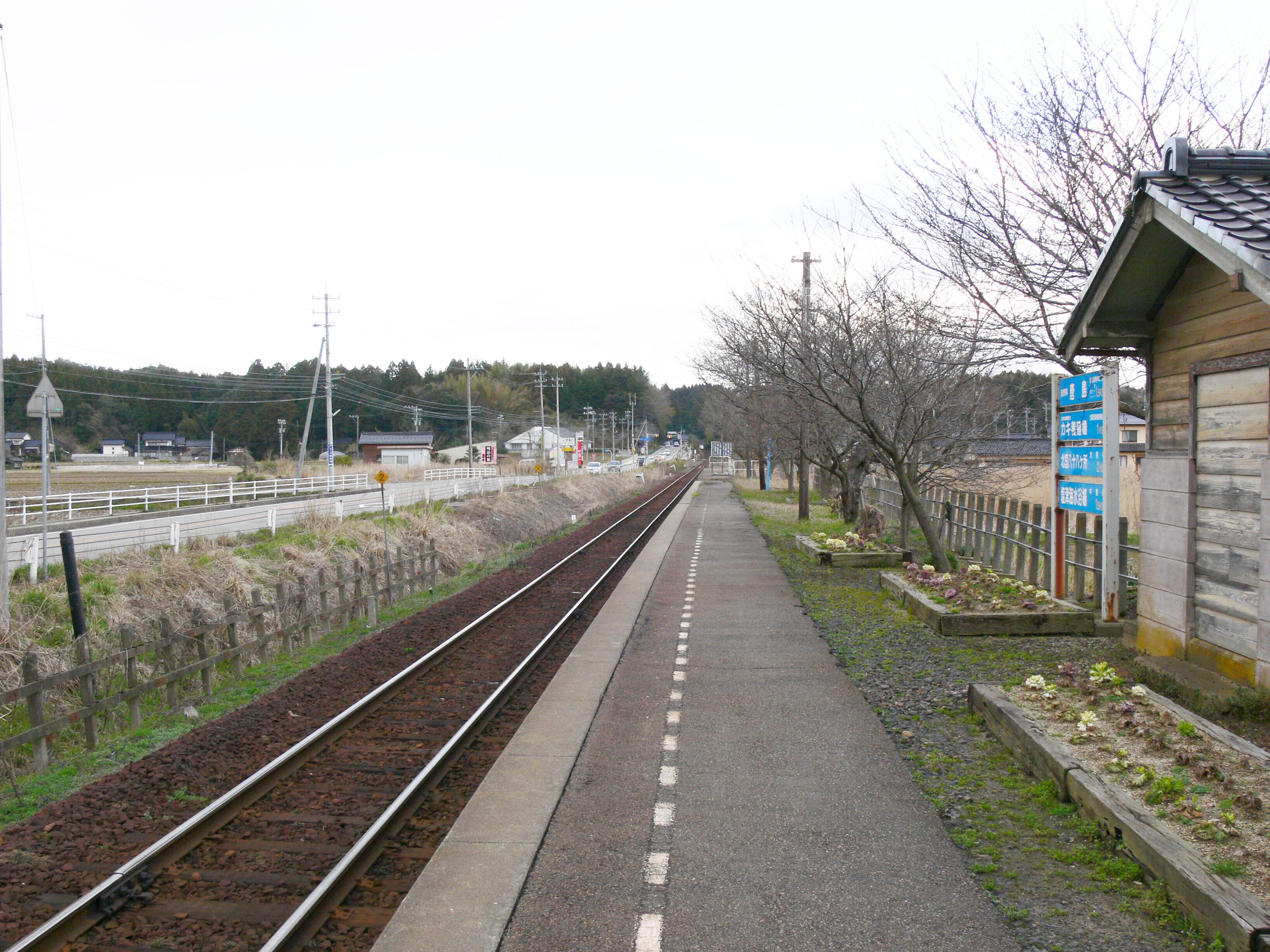 穴水方面に向かって右側に単式ホーム1面1線を有する地上駅(停留所)。終日無人駅であり、駅舎には窓口も残っているものの使われていない。