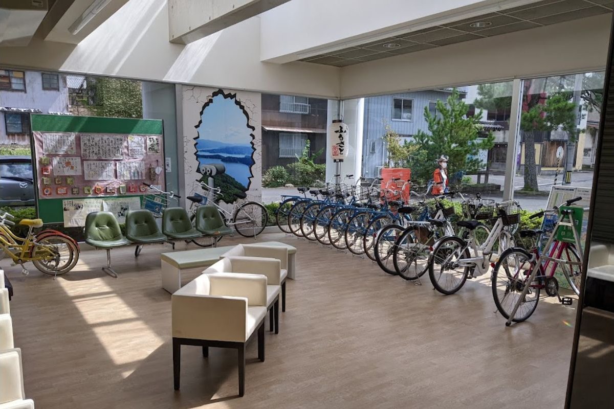 駅舎には観光会館「サンレイク」が併設されており、レンタサイクルの営業などを行っている。