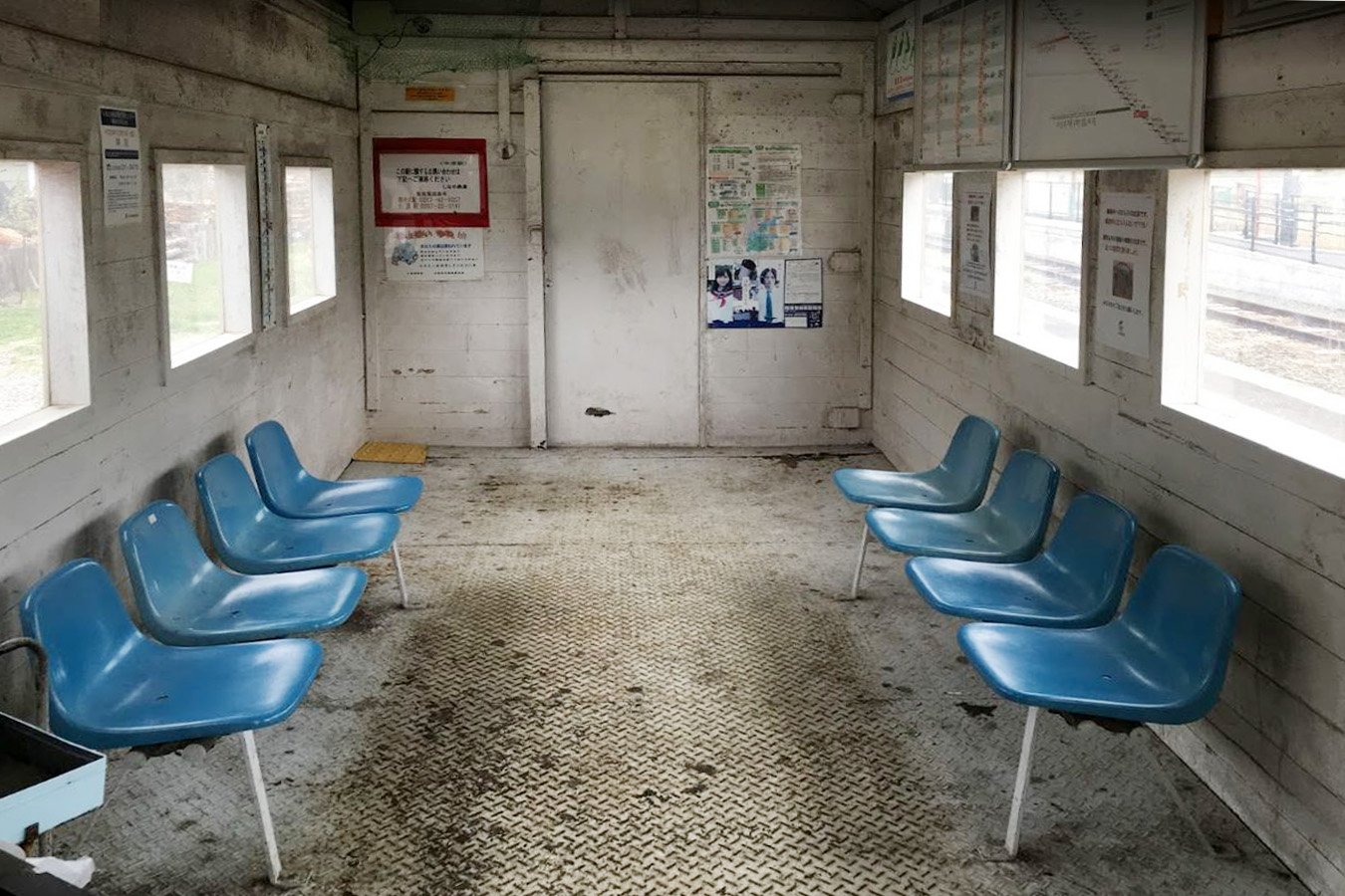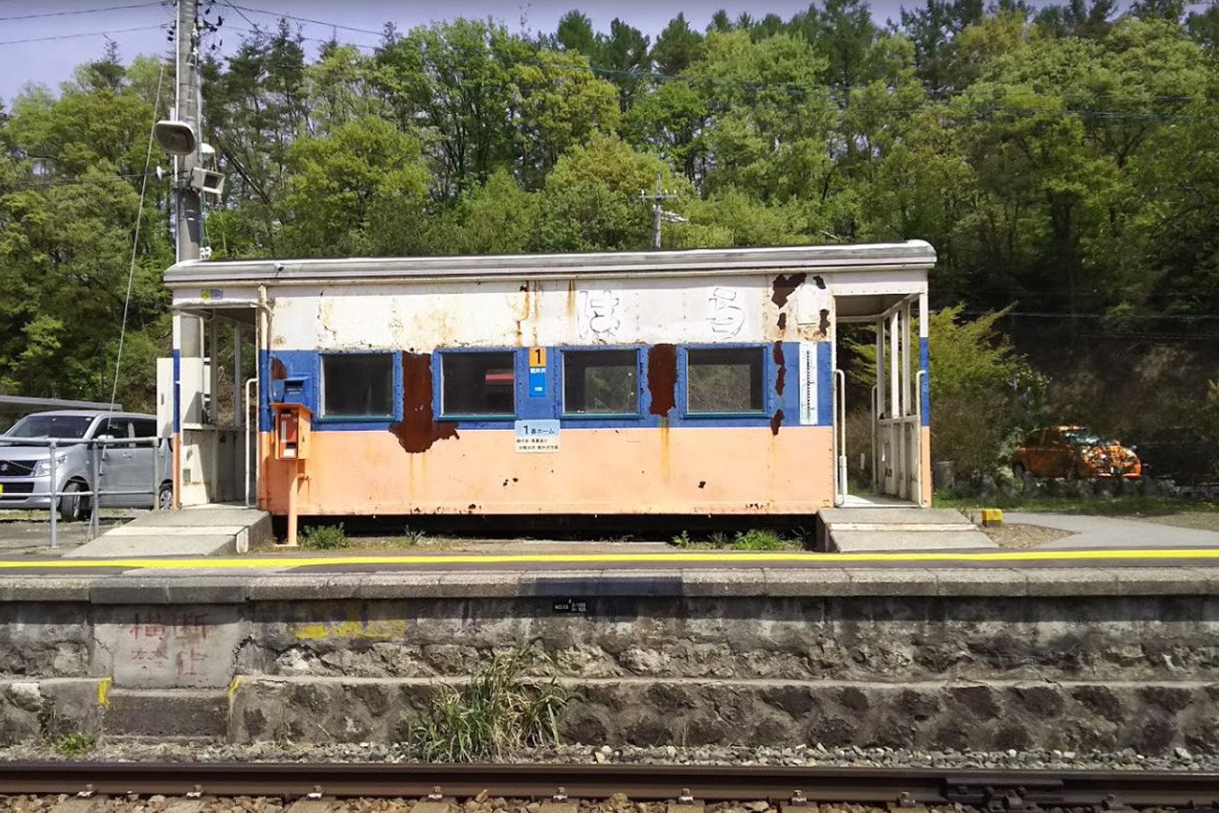 国鉄末期に駅舎を解体し、貨車(緩急車)改造の待合室を設置しています。