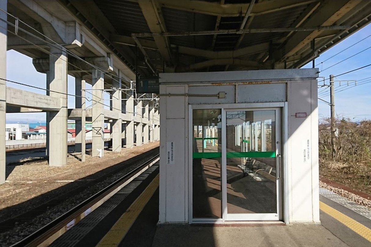 駅舎とホームの間には上越新幹線の高架橋が通り、その下にはかつて貨物専用線の側線がありました。