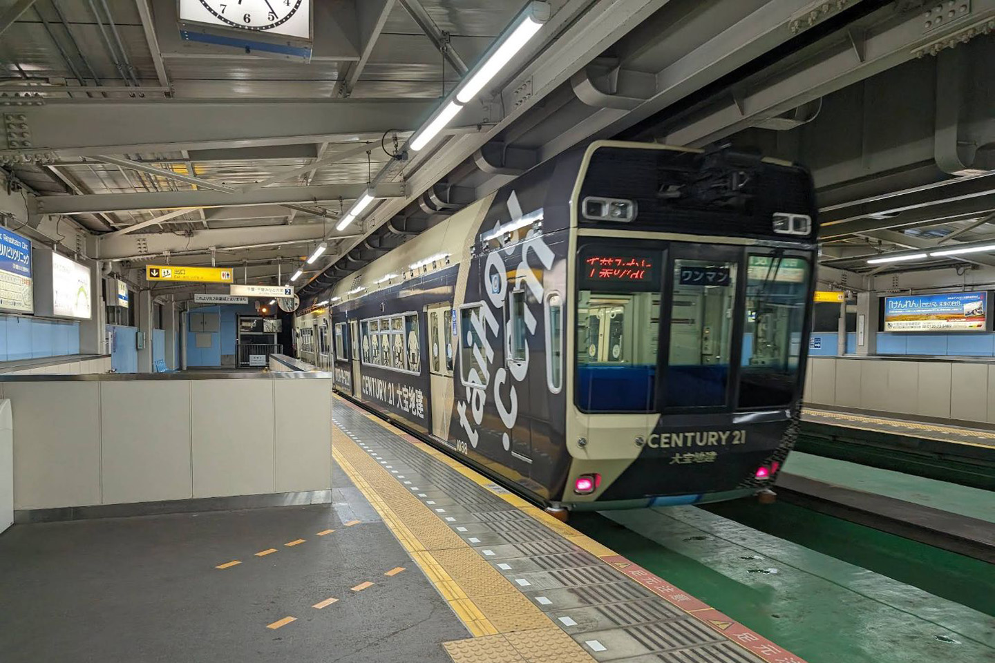 - ホーム:ベンチ、自動販売機などがある。全長66メ-トル(4両編成対応)。上屋設置。