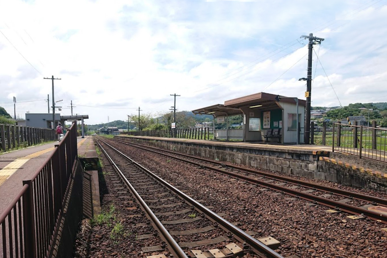 駅舎は扉のない構造でバリアフリーとするためスロープが設置されています。待合所があります。