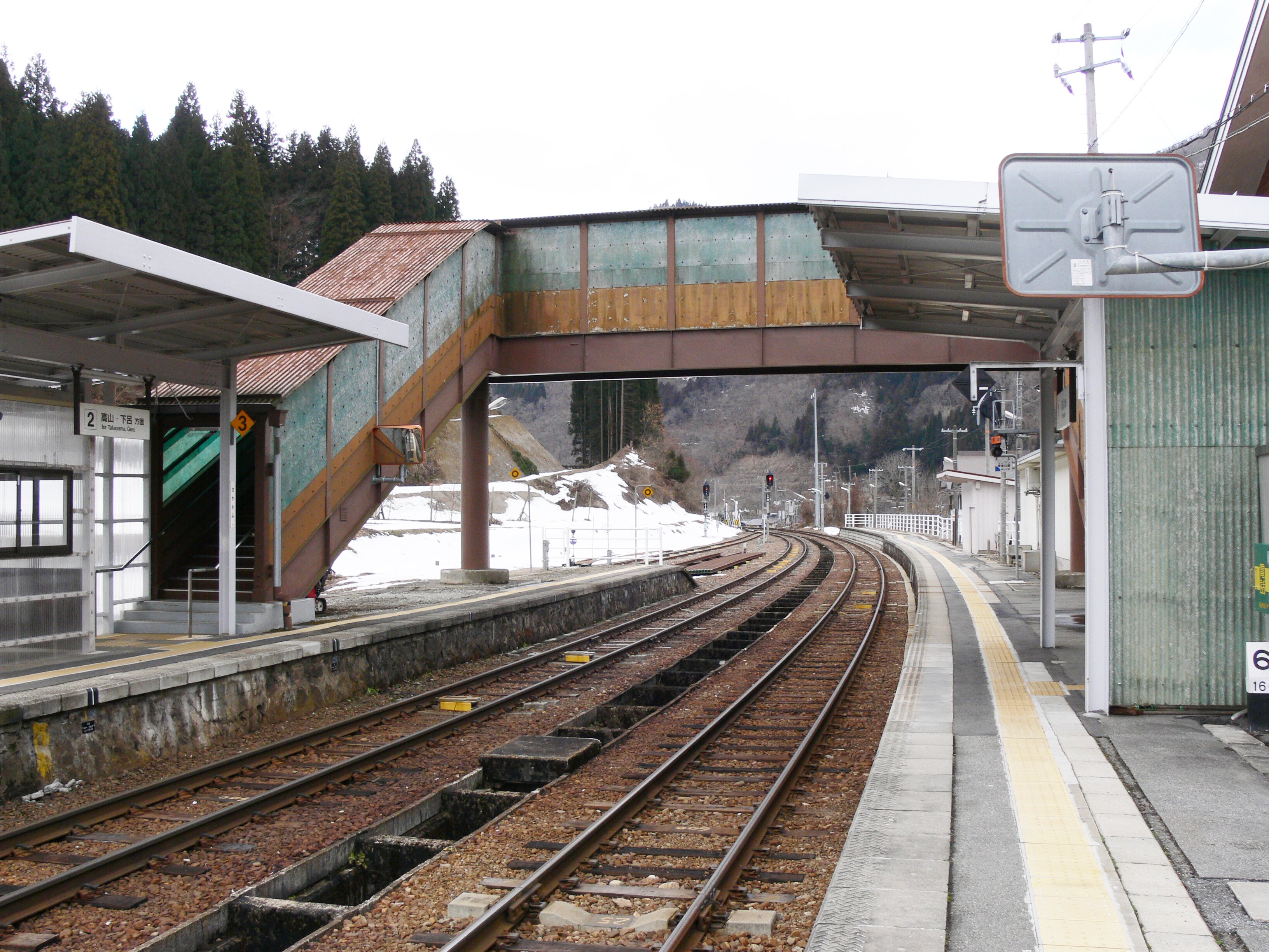 - 停車する列車は、高山方面と猪谷駅を結ぶ普通列車のみで、高山本線で運行される特急「ひだ」は通過している。