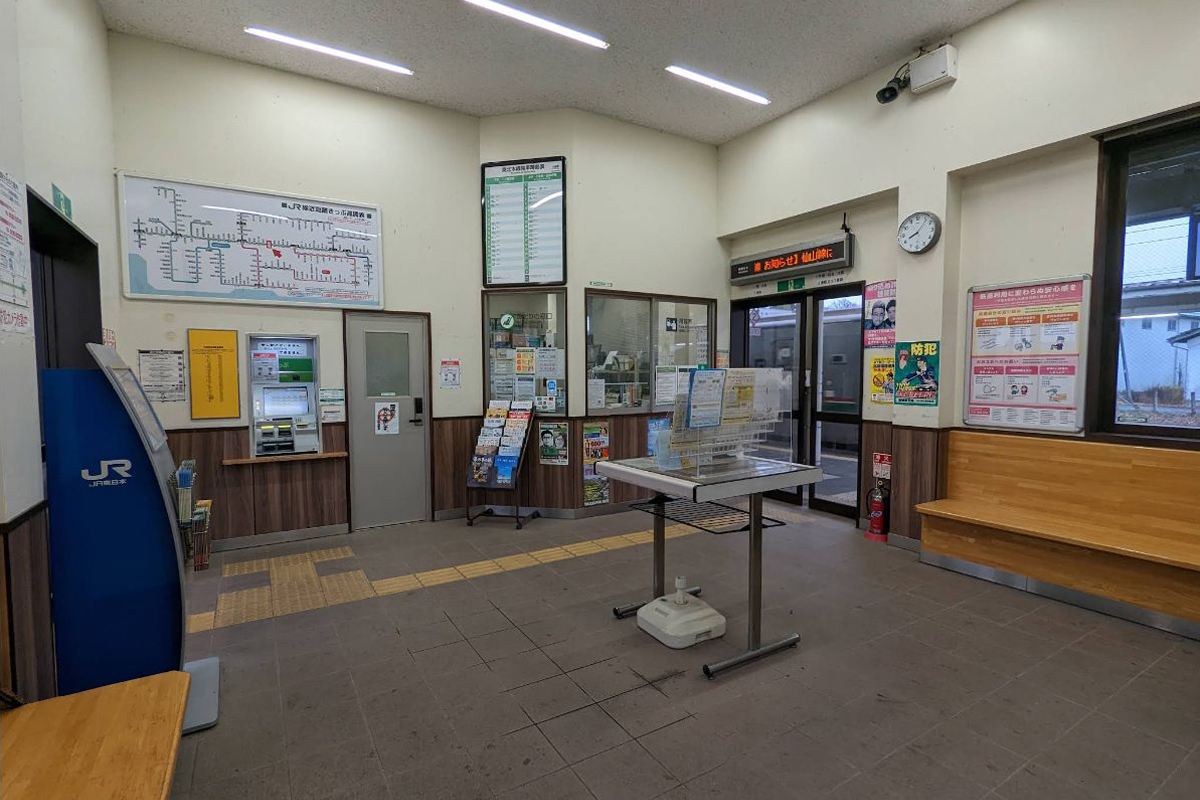 駅舎は木造一階建てで、JR東日本の駅とは小さな駅前広場を挟んで北西に位置していた。