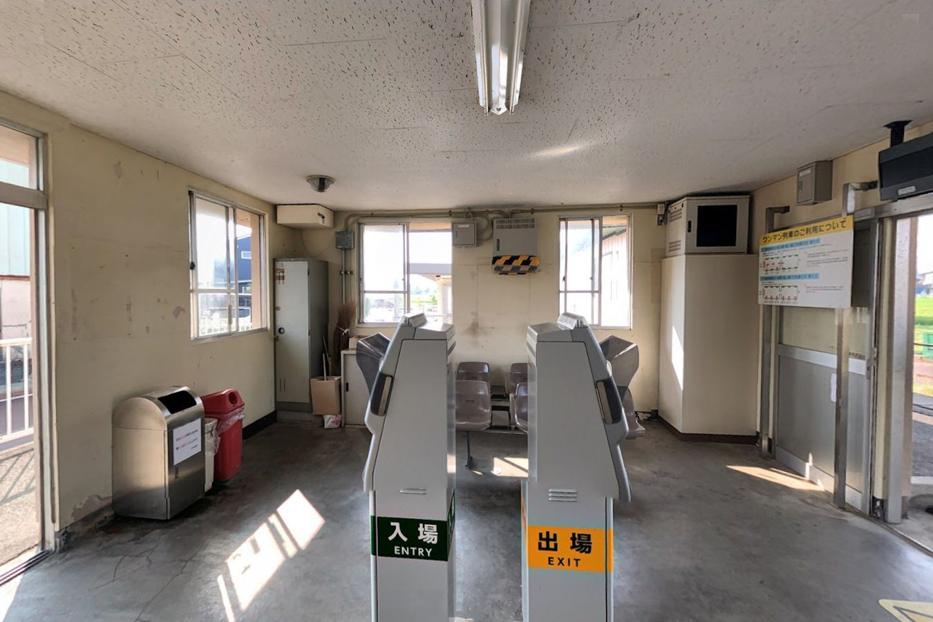 無人駅(燕三条駅管理)。駅舎のほぼ中央部に駅出入口とホーム出入口が設けられており、駅舎内には簡易Suica改札機(入場用・出場用各1台)と乗車駅証明書発行機、トイレなどが設けられている。